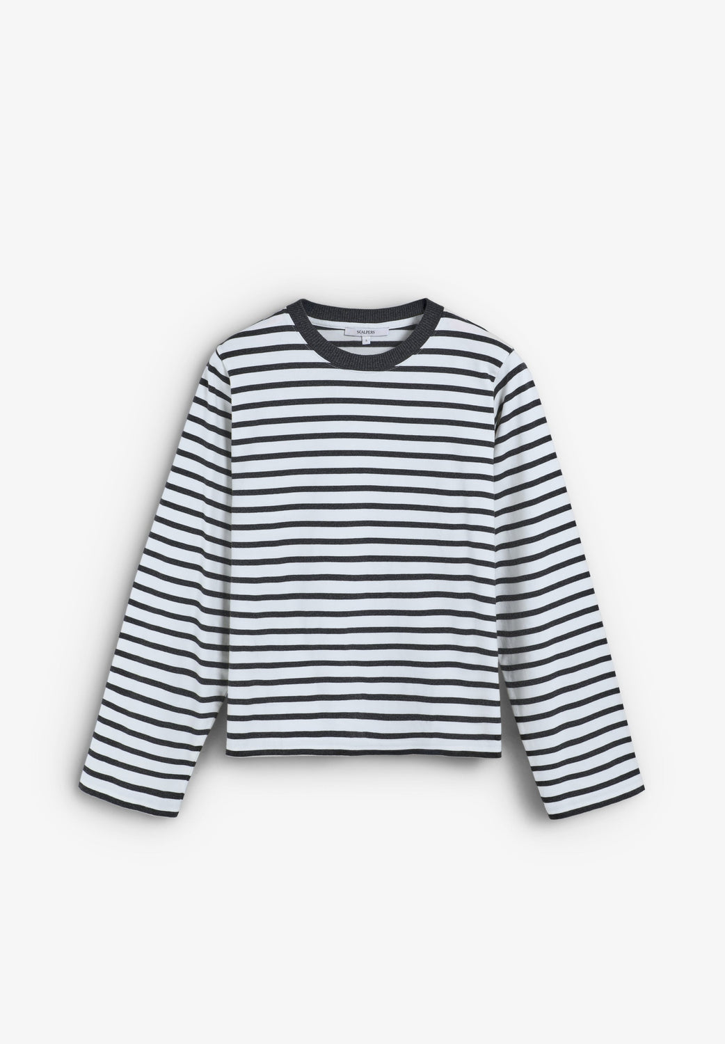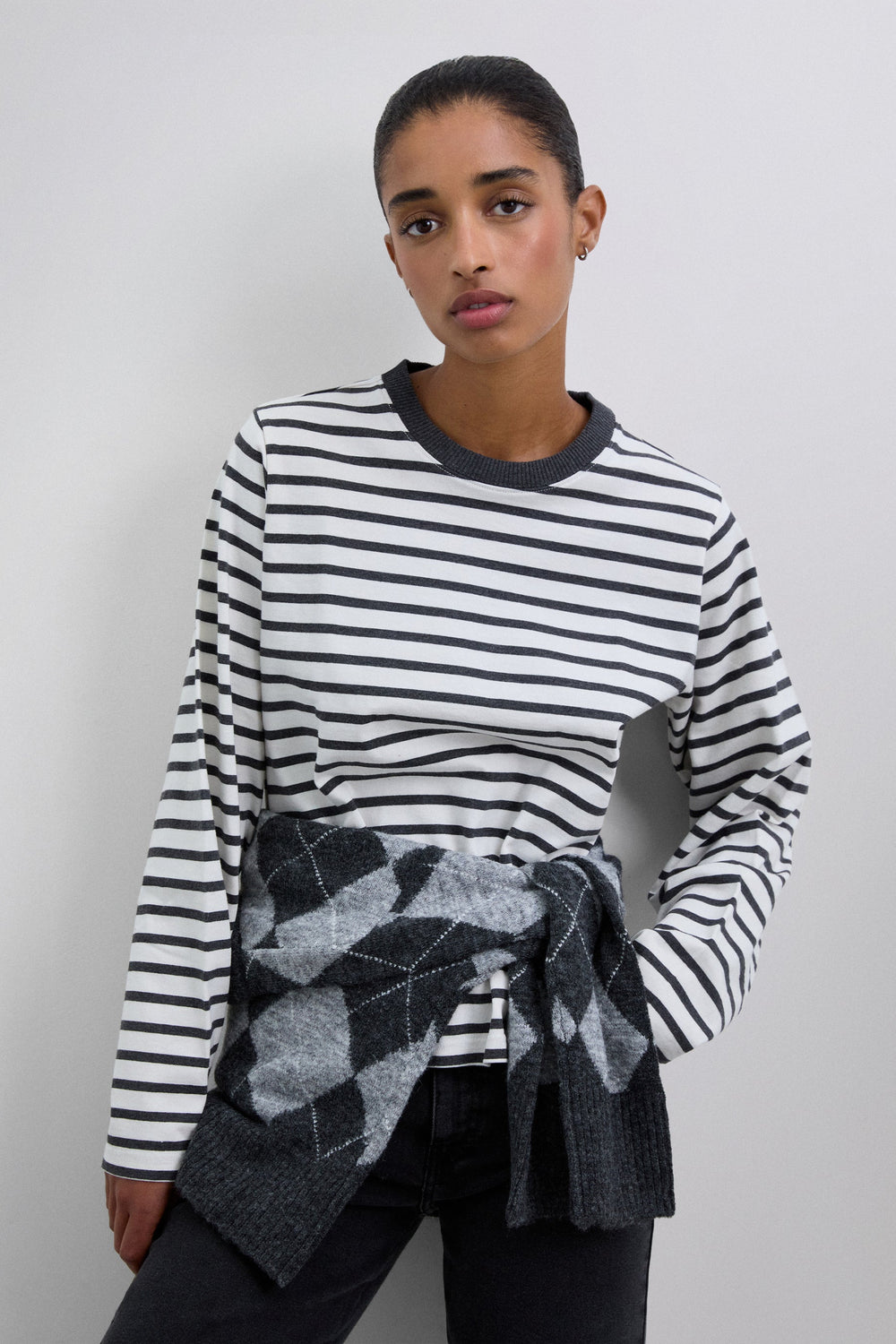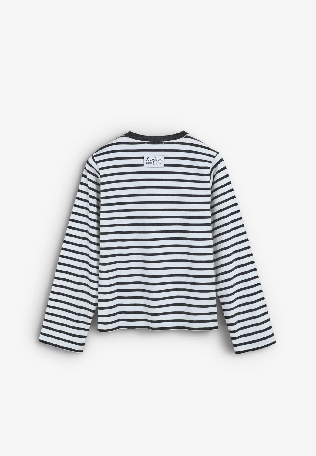 Striped T-shirt made of 100% BCI cotton. Long sleeves, regular fit. Piped collar detail.