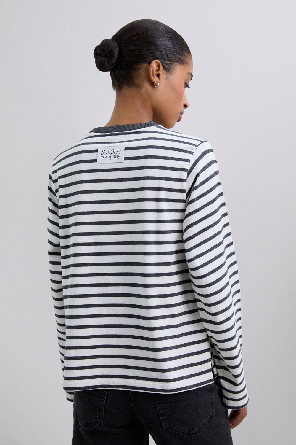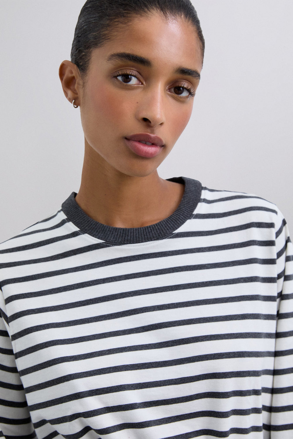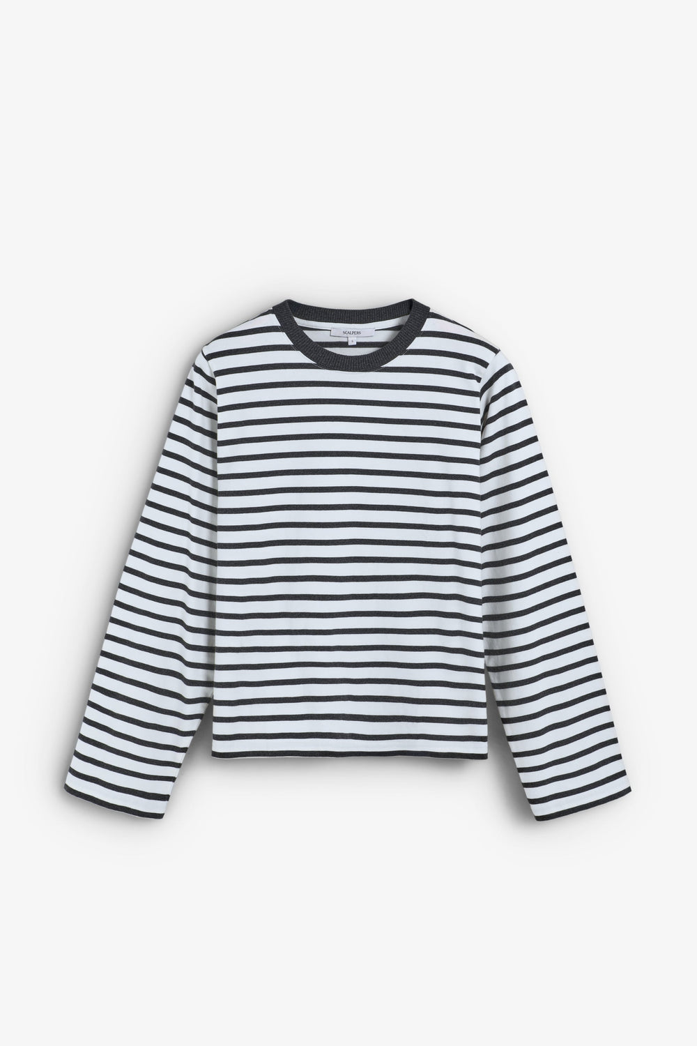 Striped T-shirt made of 100% BCI cotton. Long sleeves, regular fit. Piped collar detail.