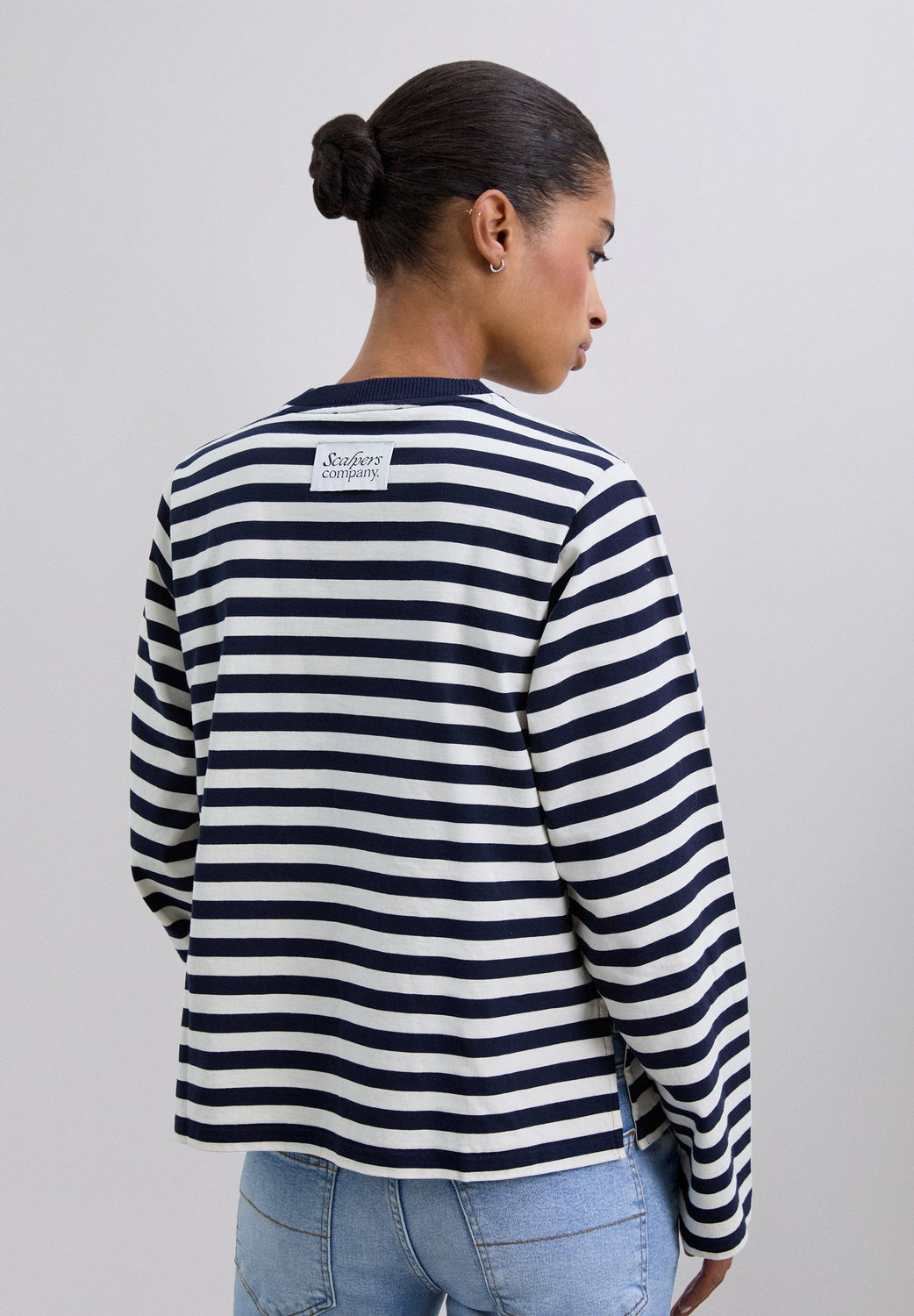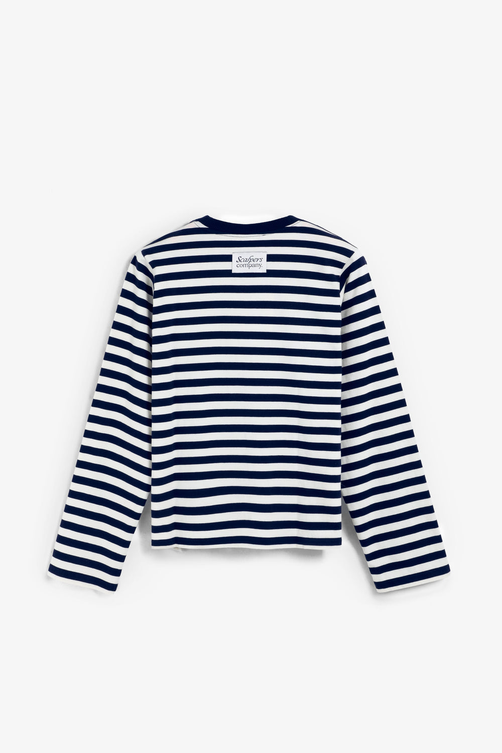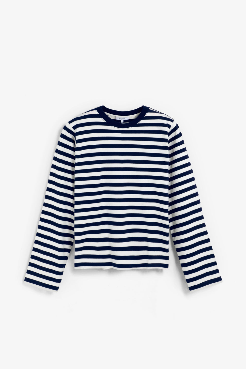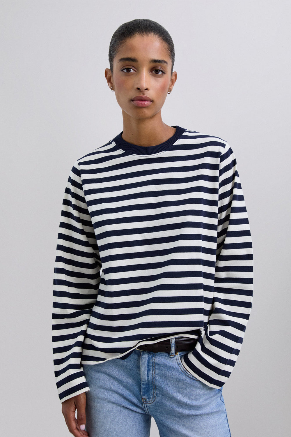 Striped T-shirt made of 100% BCI cotton. Long sleeves, regular fit. Piped collar detail.