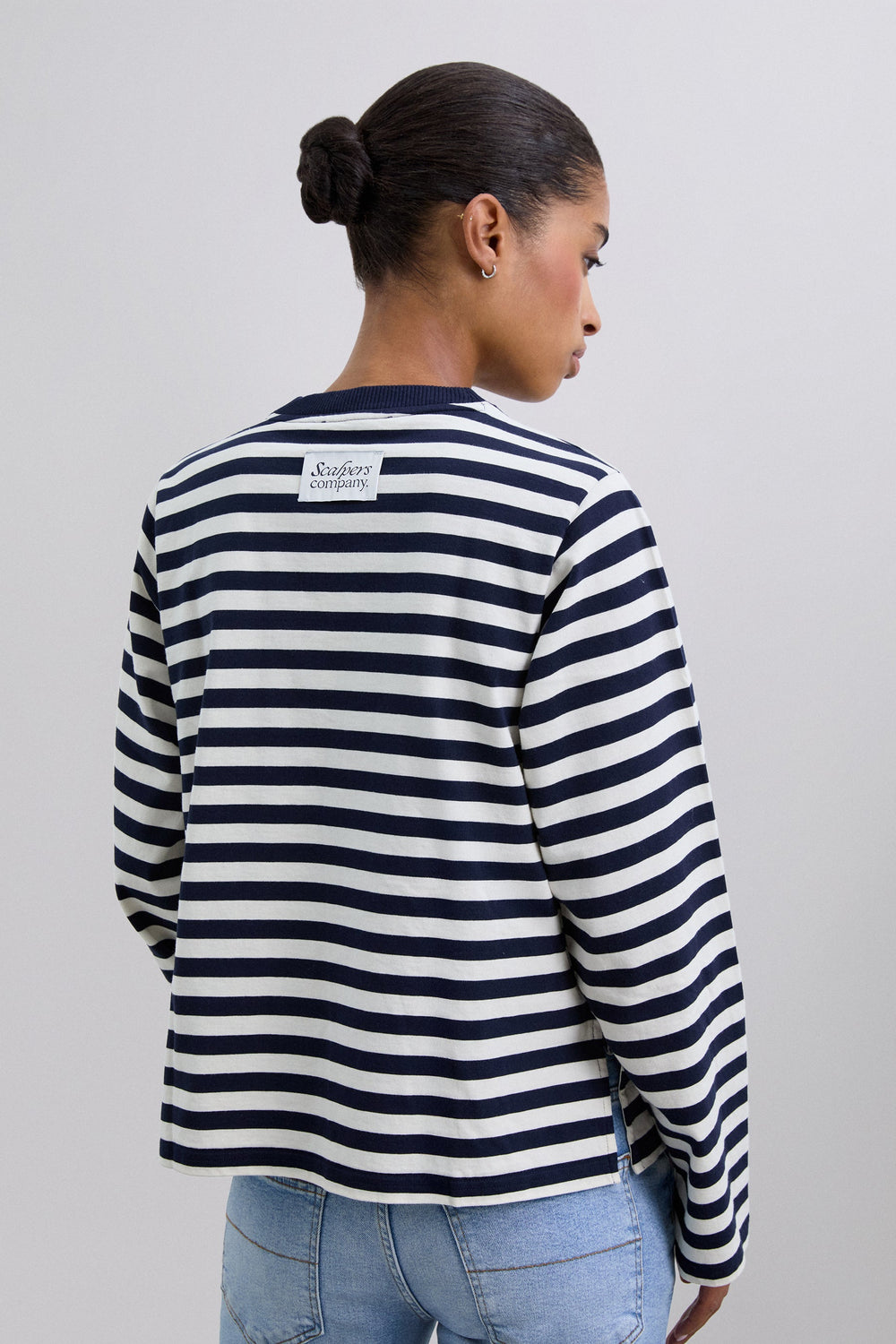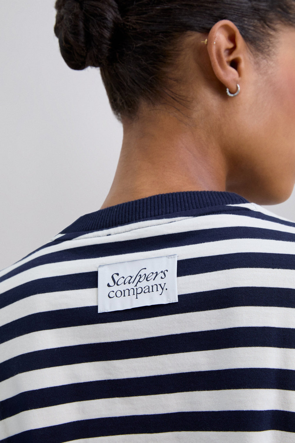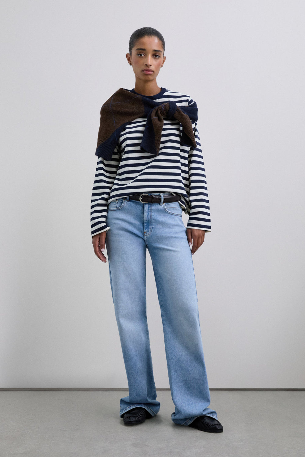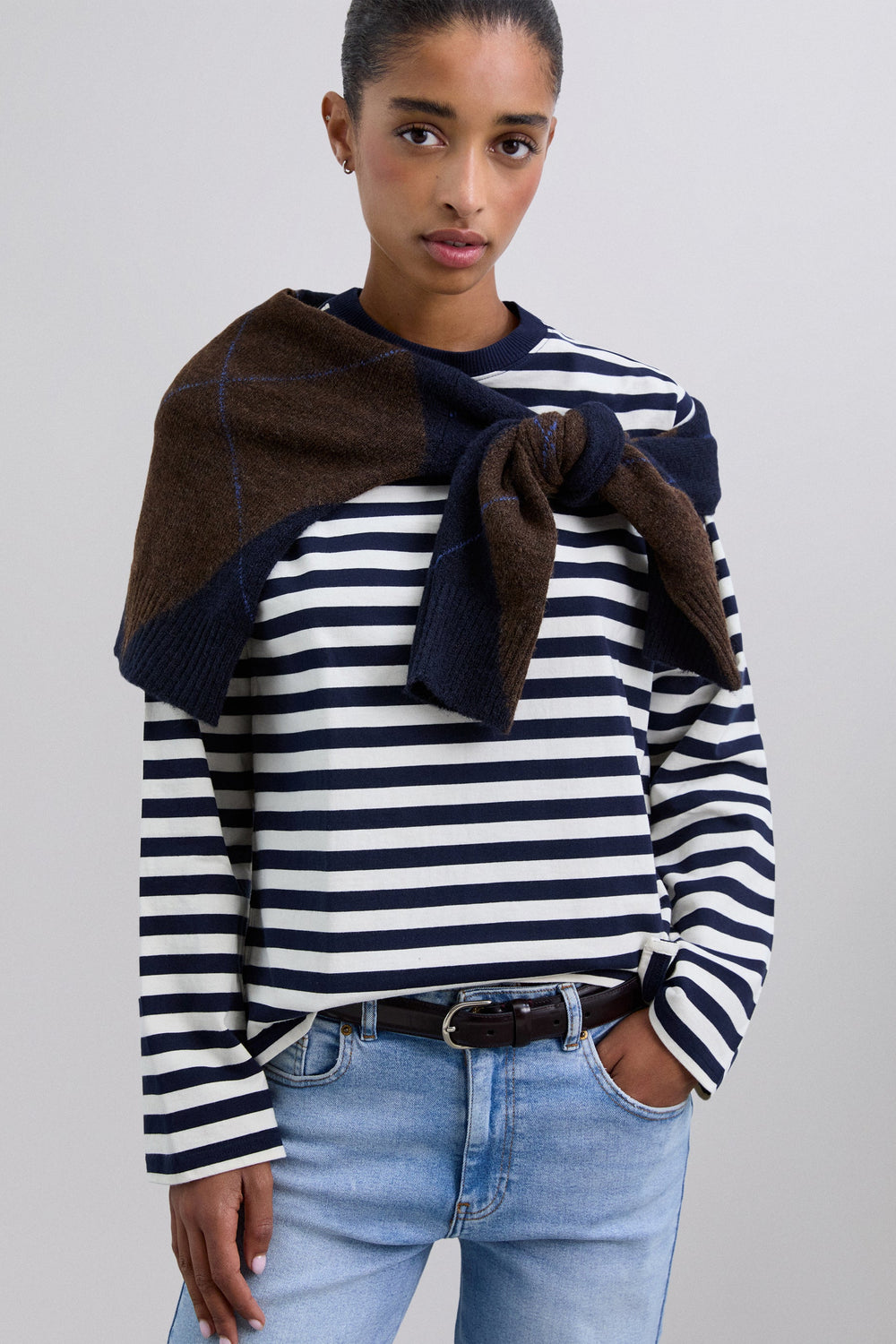 Striped T-shirt made of 100% BCI cotton. Long sleeves, regular fit. Piped collar detail.
