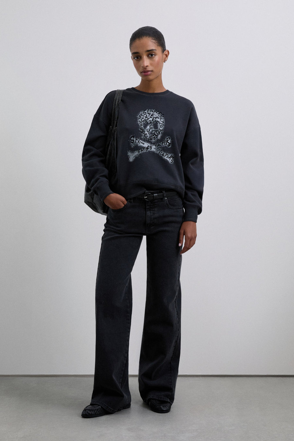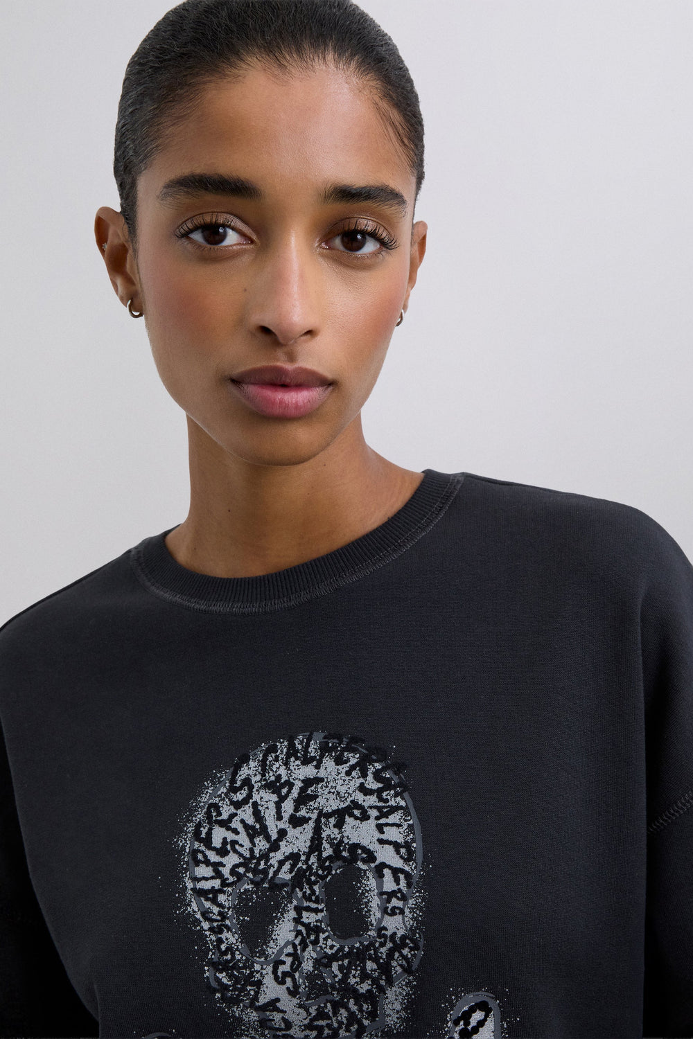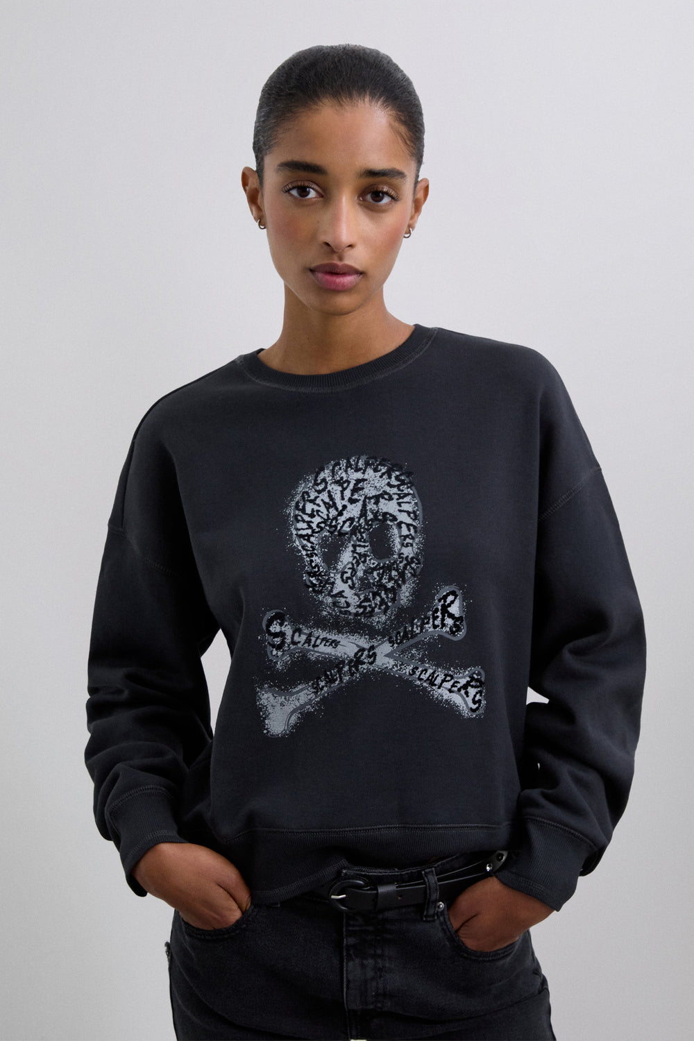 Sweatshirt made of 100% organic cotton. Regular fit, round neck and long sleeves with ribbed cuffs. Skull details with flock print on front.