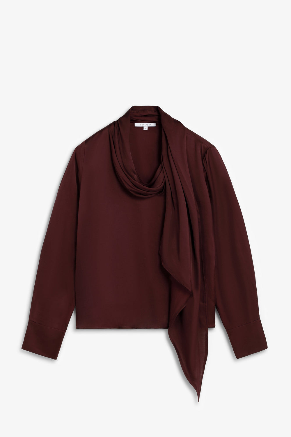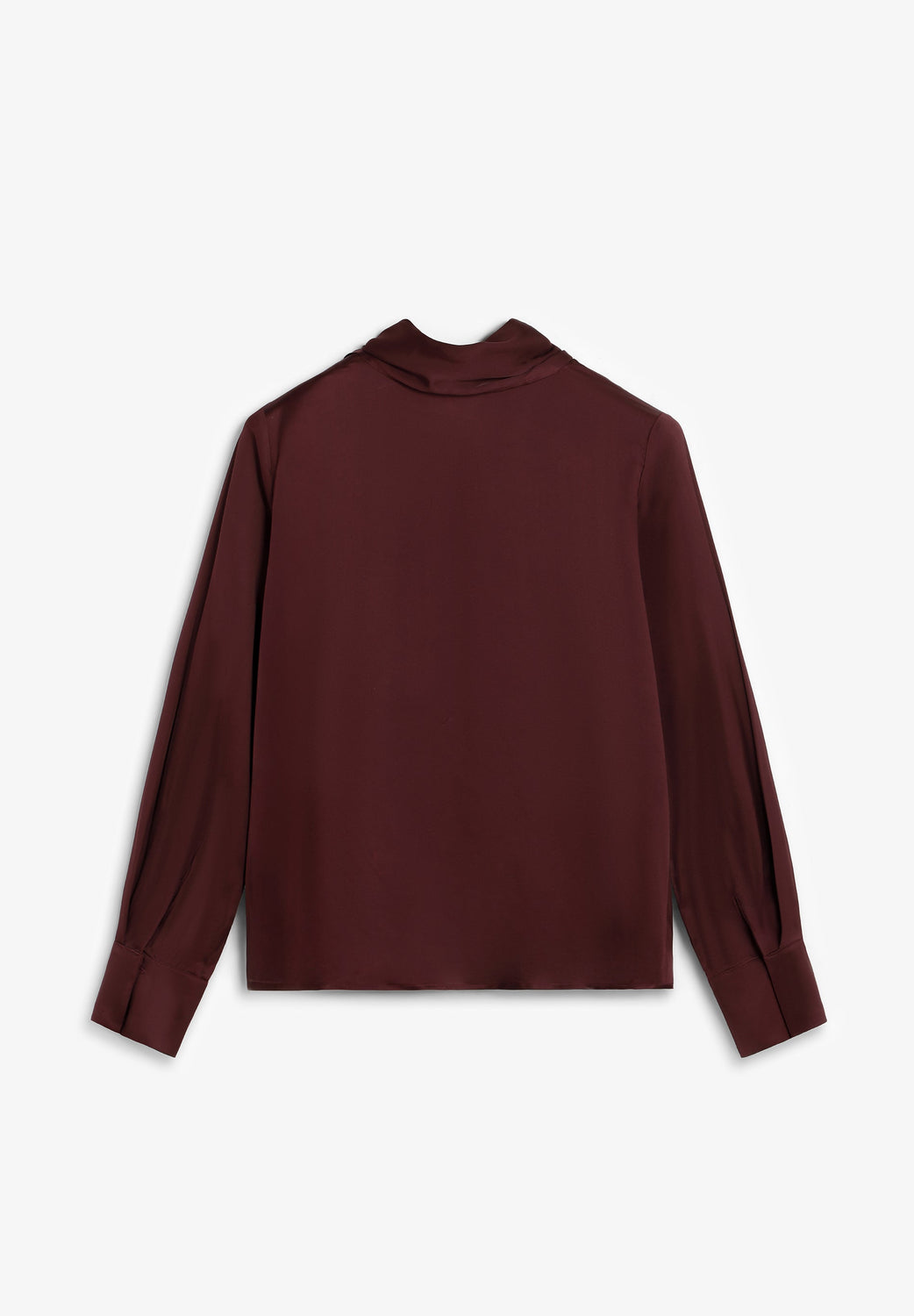 Satin blouse with long sleeves. Draped collar and adjustable bow.