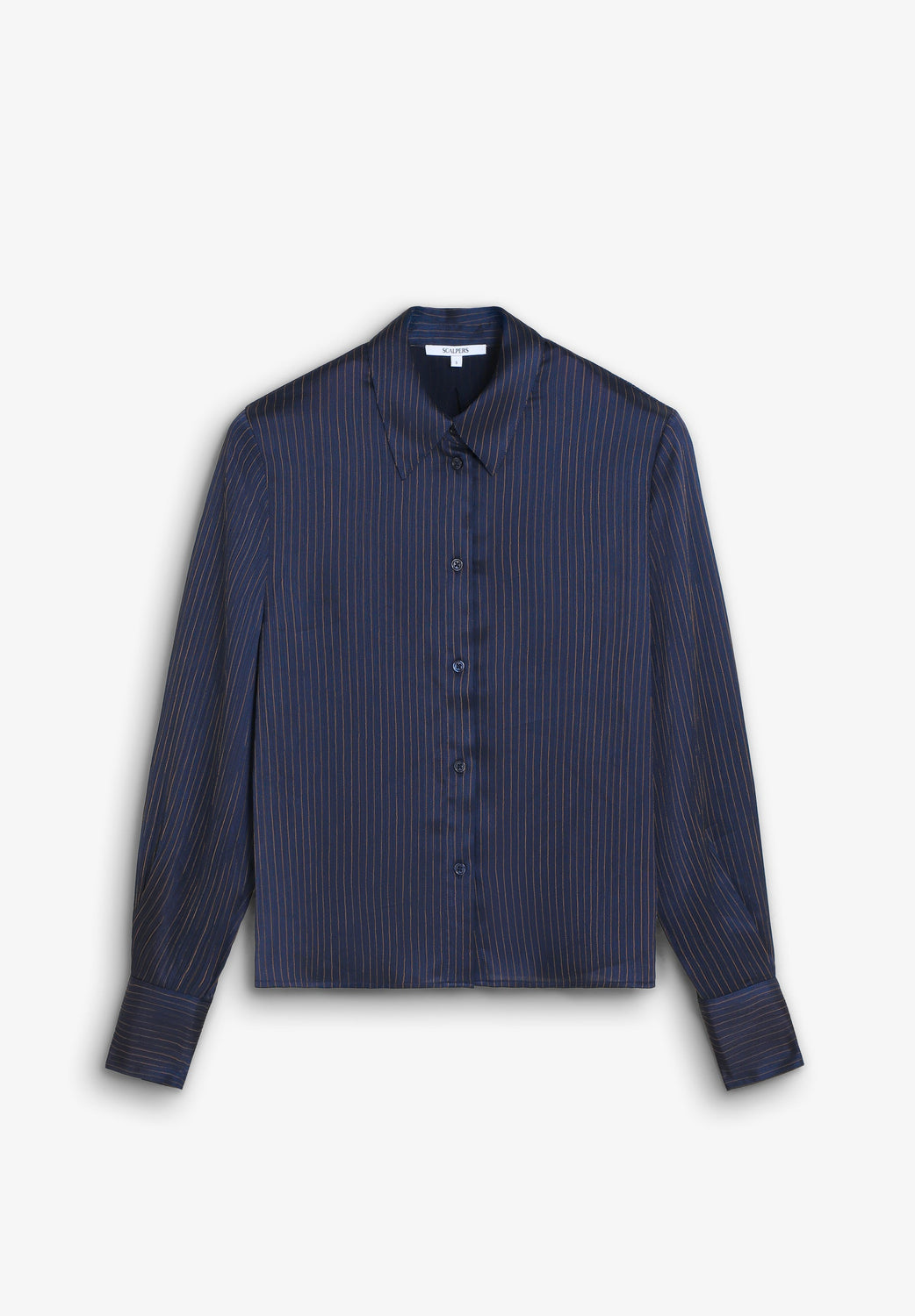 Shirt made of loose-fitting fabric in a pinstripe print. Classic collar. Button fastening and long sleeves with buttoned cuffs.