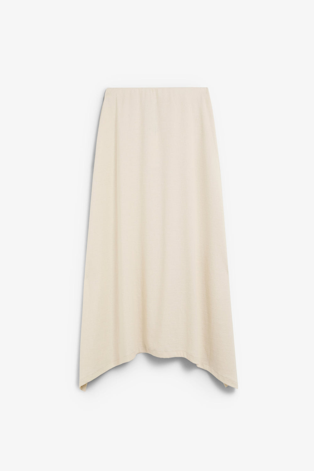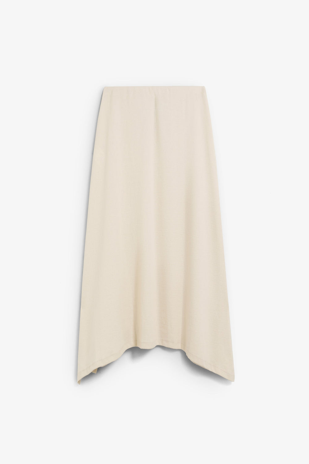Chunky knit midi skirt made of 100% cotton. Regular fit, elasticated waistband and visible seams. Asymmetric hem.