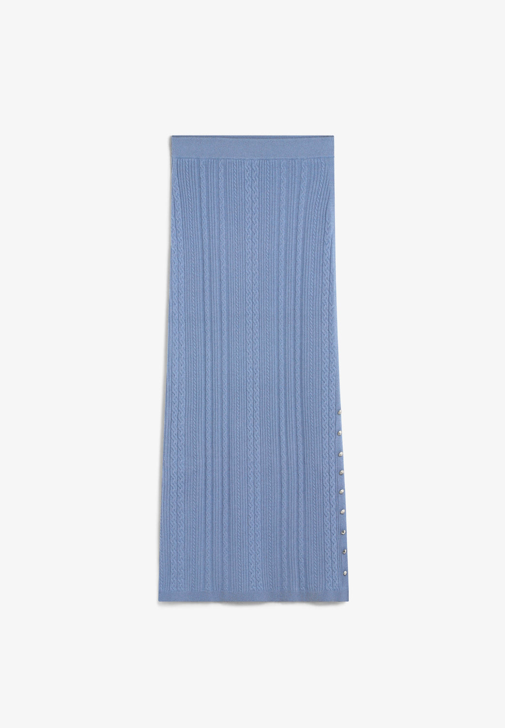 Midi skirt made of a wool blend. Elastic waistband. Slit on the side. Button detail.