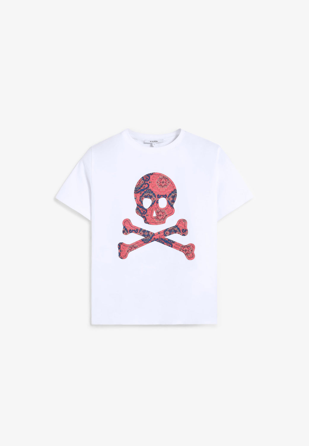T-shirt made of 100% cotton. Round neck. Regular fit and short sleeves. Positional embroidered skull and crossbones print on the front.