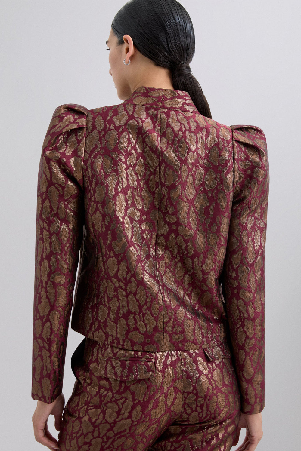 CROPPED METALLIC ANIMAL PRINT BLAZER