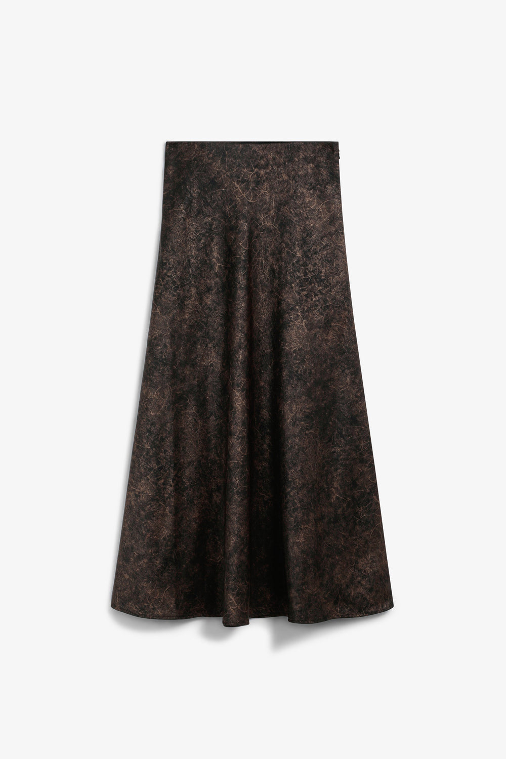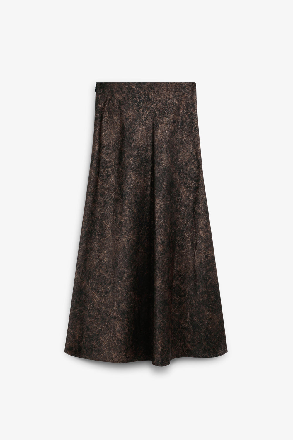 Flowing fabric skirt with satin finish. Marbleised effect print. Regular fit. Midi cut. Concealed side zip fastening.