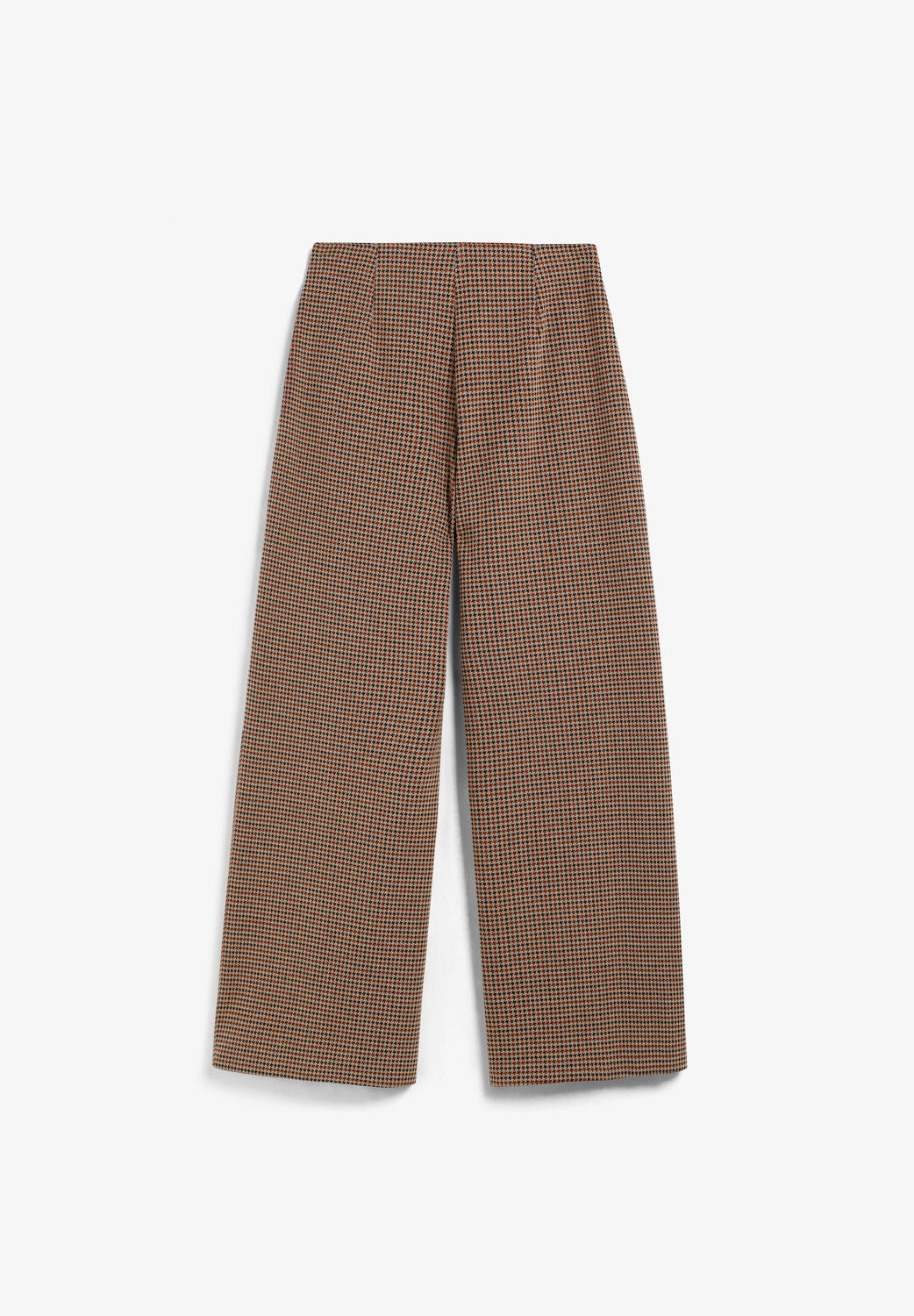 Houndstooth print trousers. Regular fit. Gathered waist. Zip fastening. Side pockets.