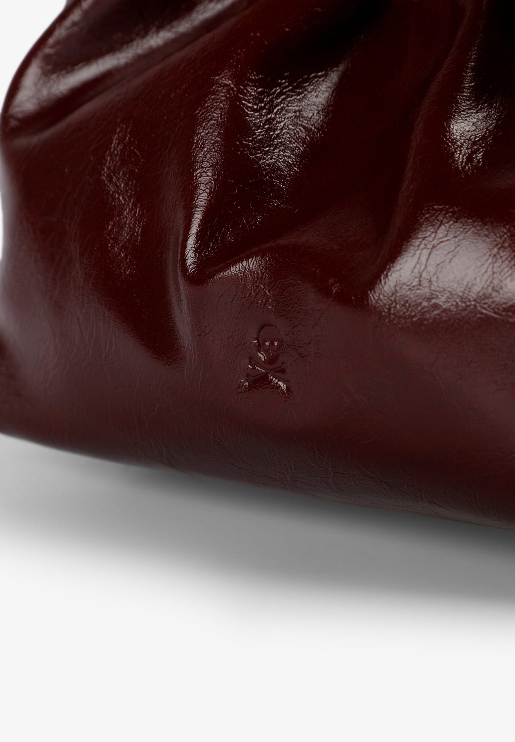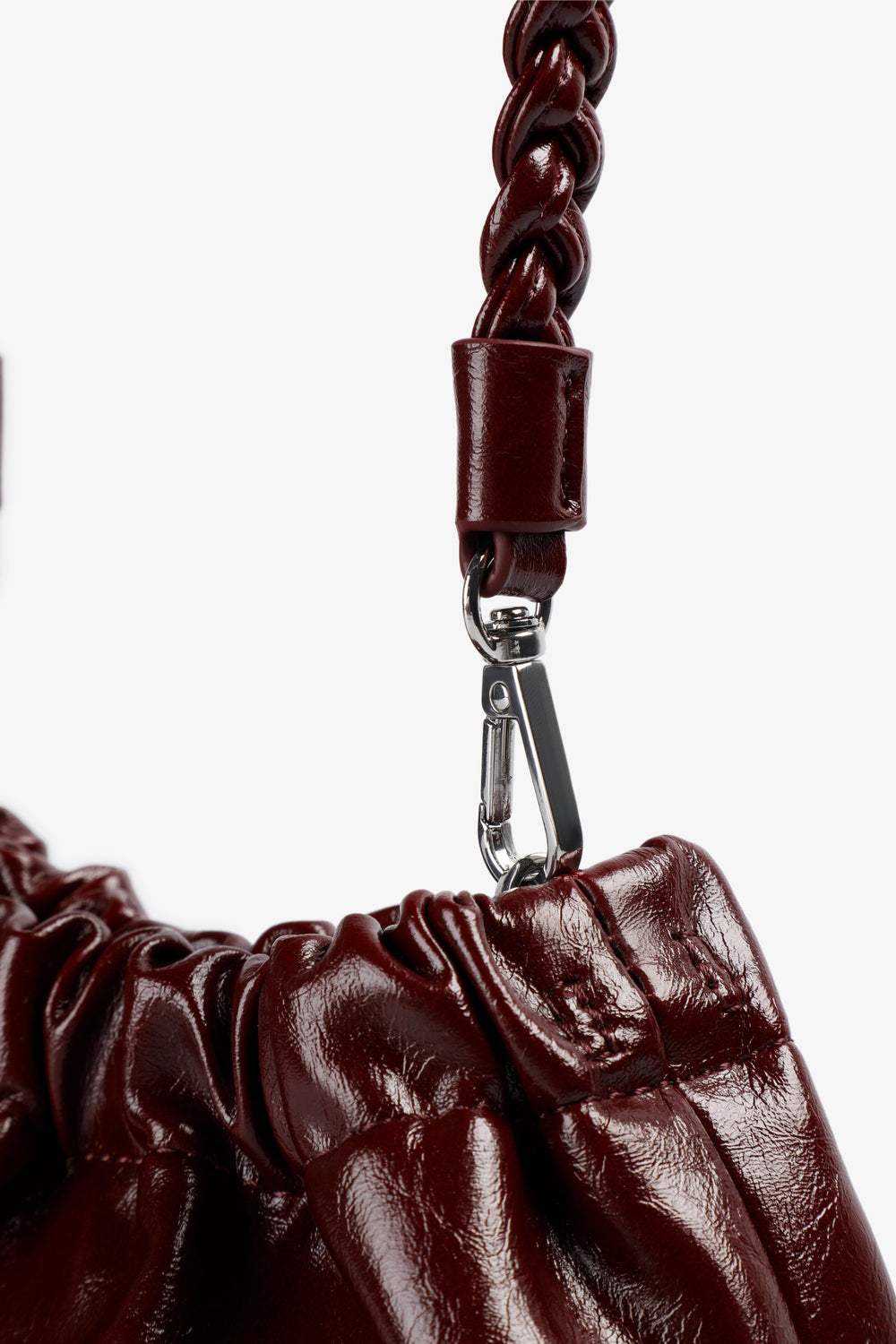 Handbag made of PU. Long detachable strap. Magnetic button fastening. Engraved logo detail on front.