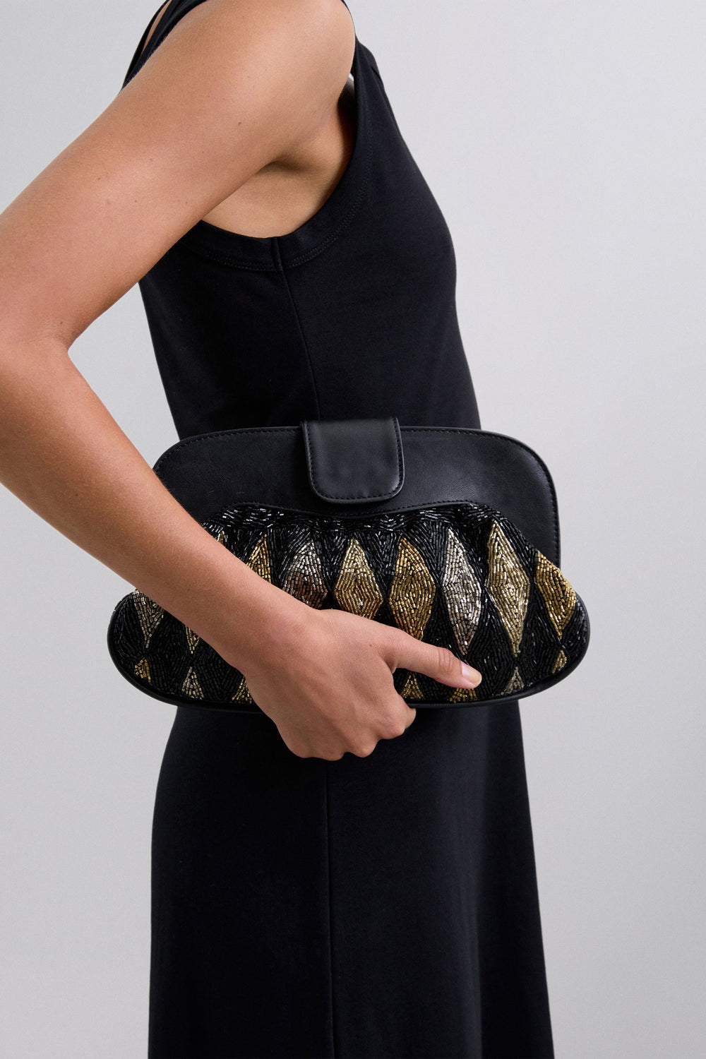 Handbag. Beaded detail. Detachable metal crossbody strap. Magnetic closure. Embroidered logo detail on the inside.