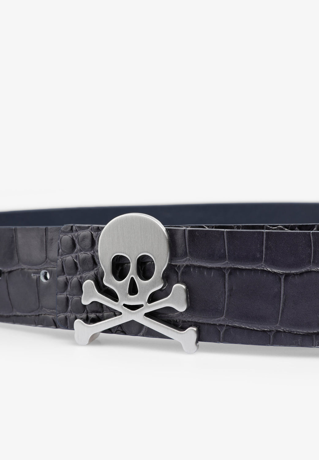 Belt made of 100% leather. Metallic skull detail on front.