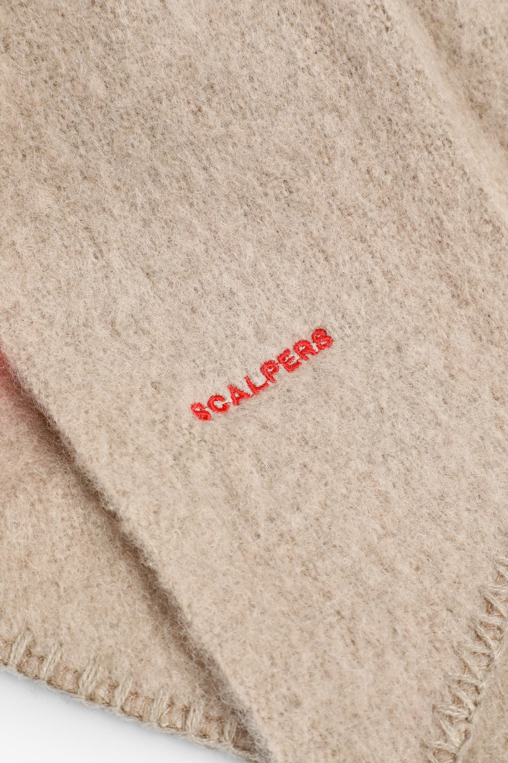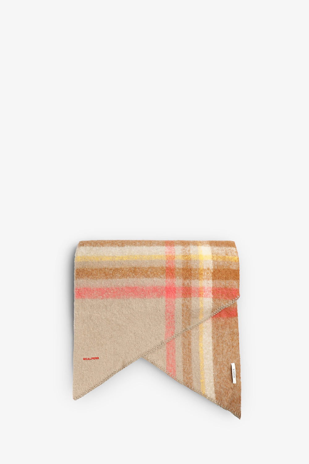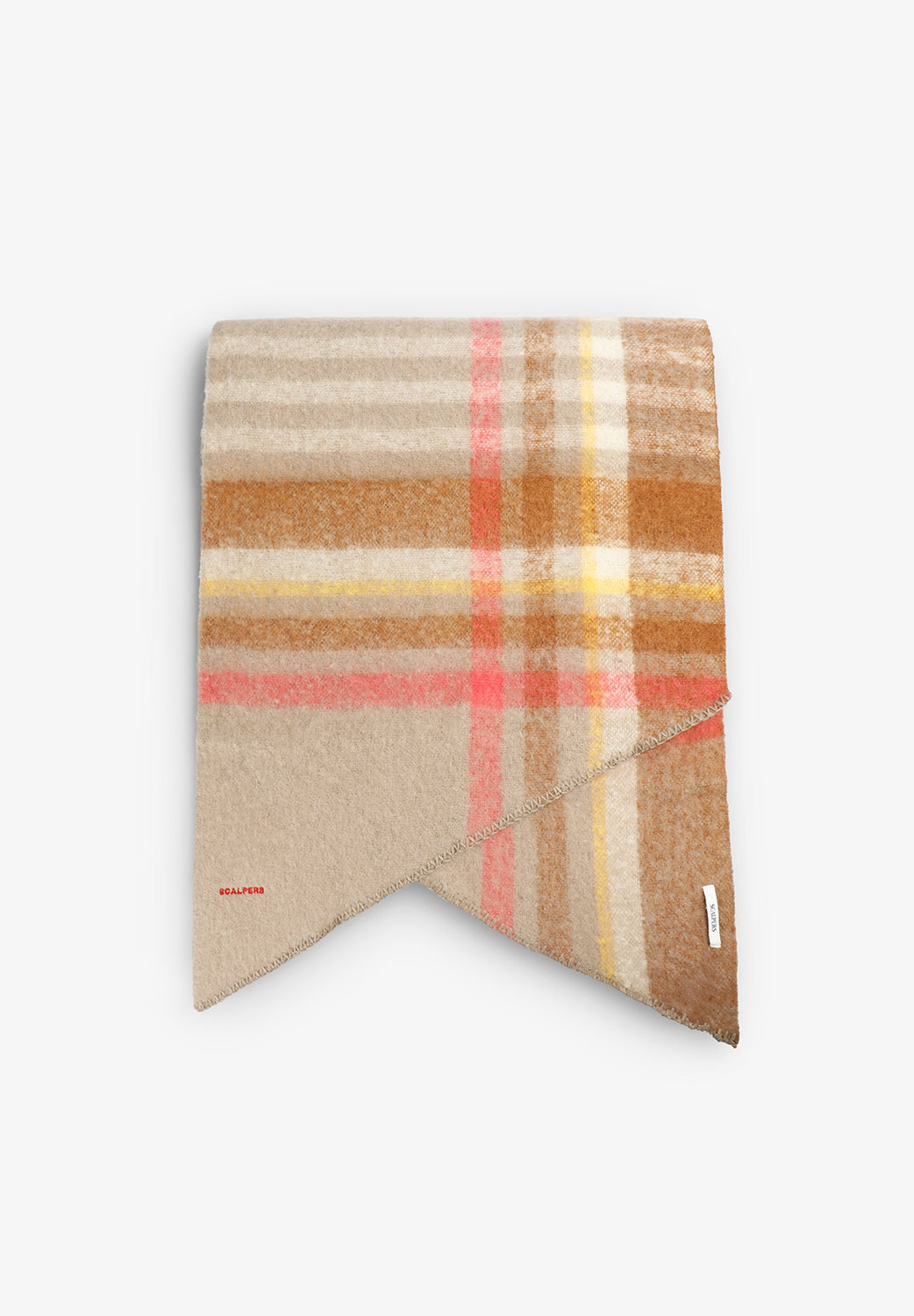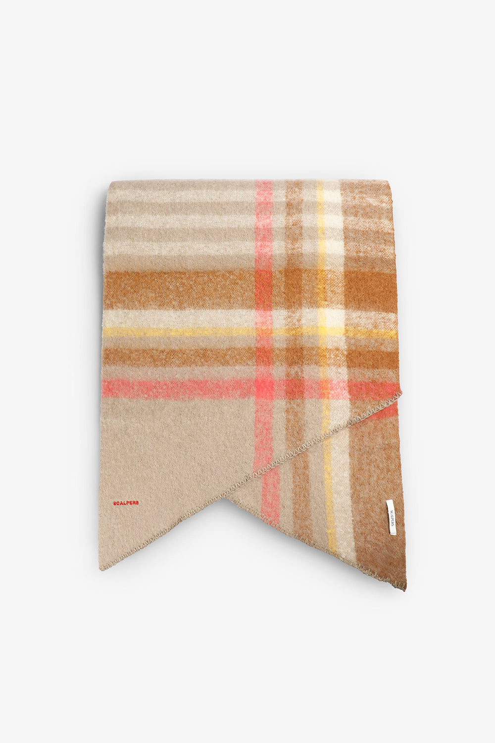 Scarf made of a wool blend. Check print. Contrast embroidered logo. Label detail.