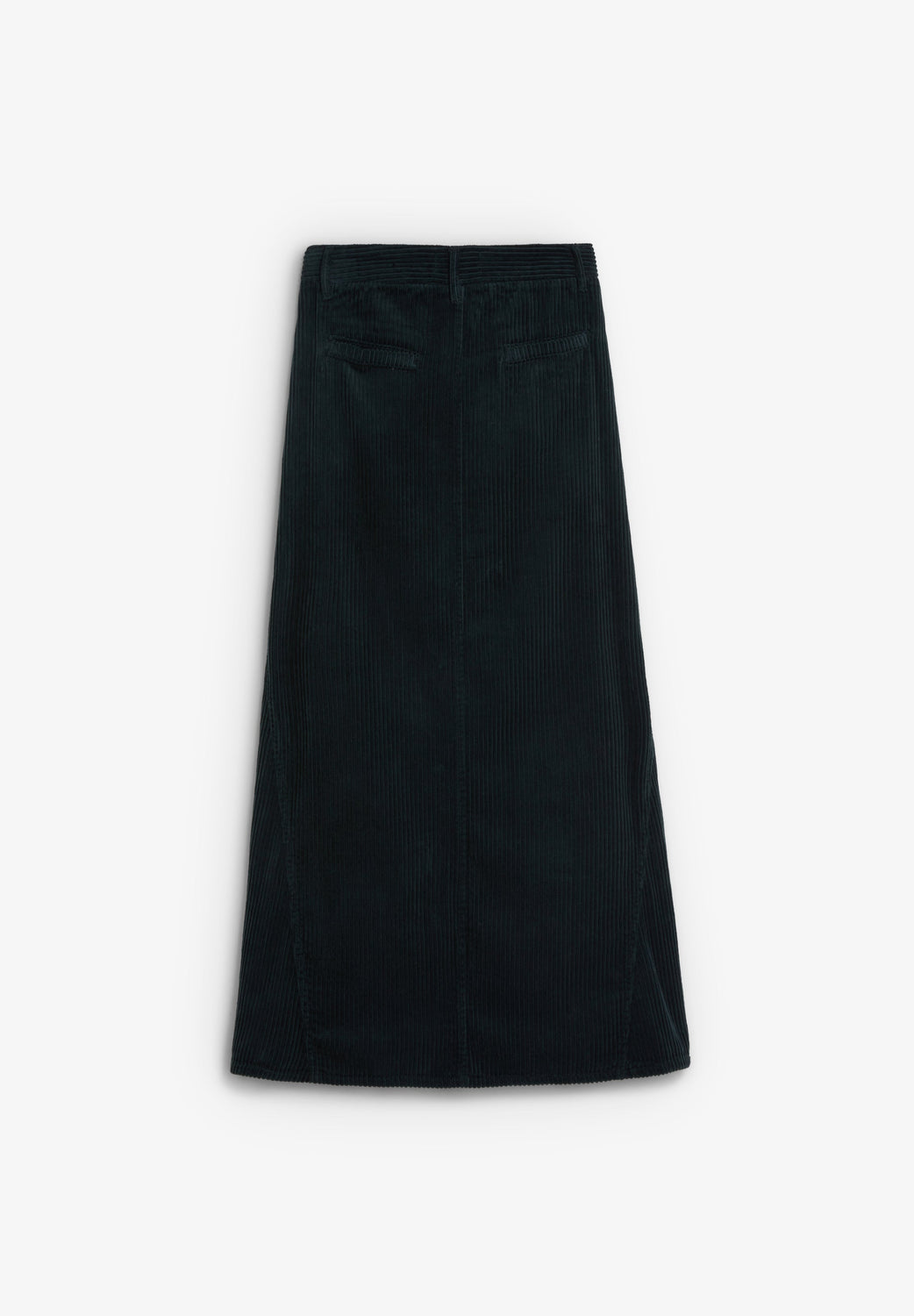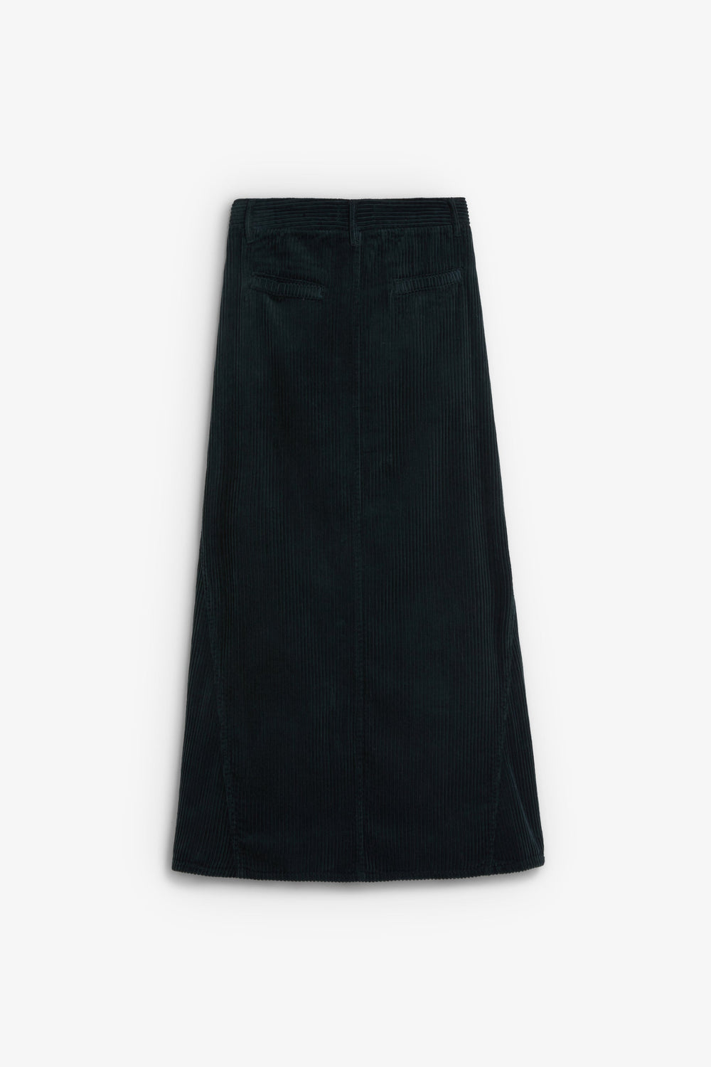 Corduroy skirt made of cotton. Pockets on the front. Zip and button fastening. Midi length. Belt loops.