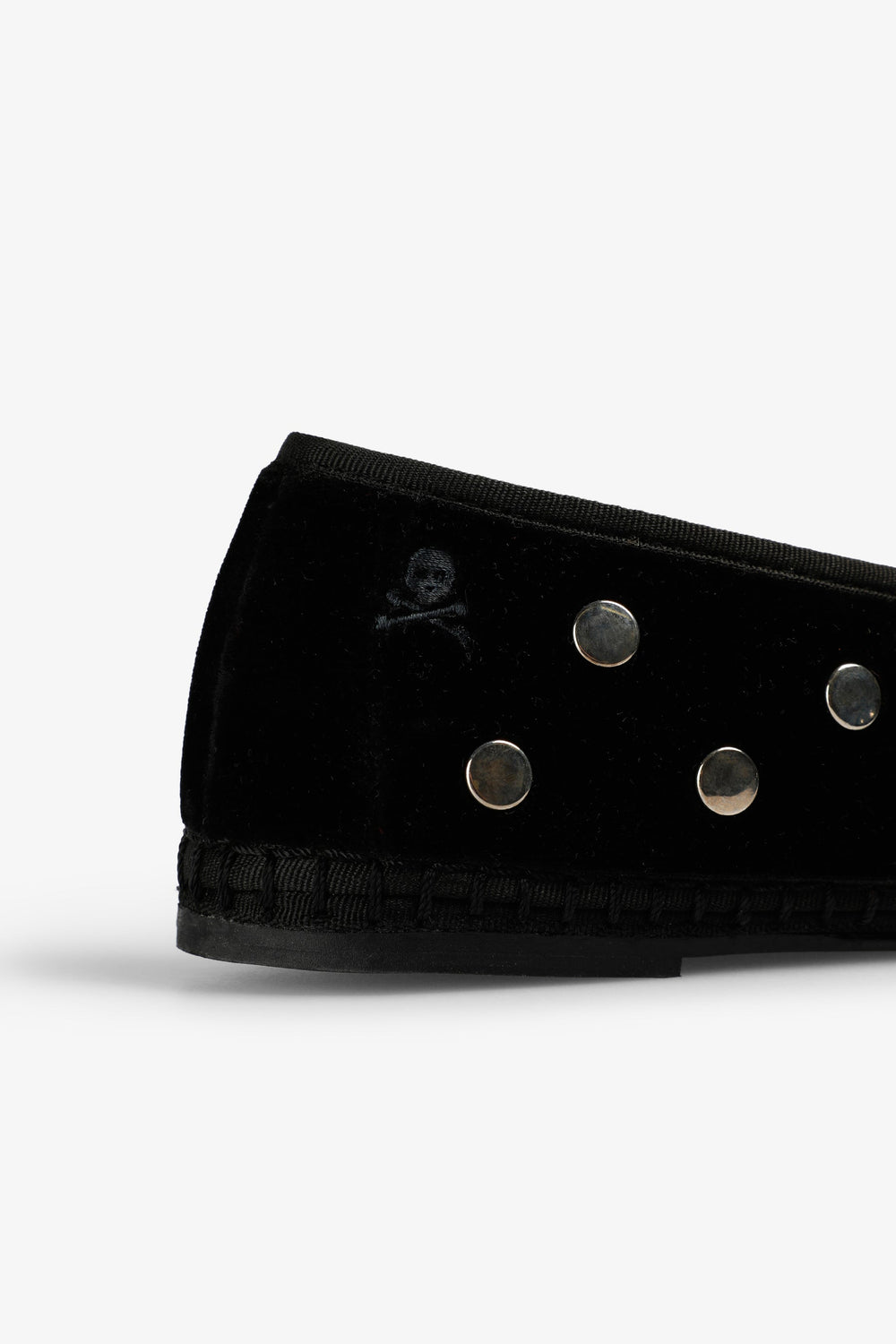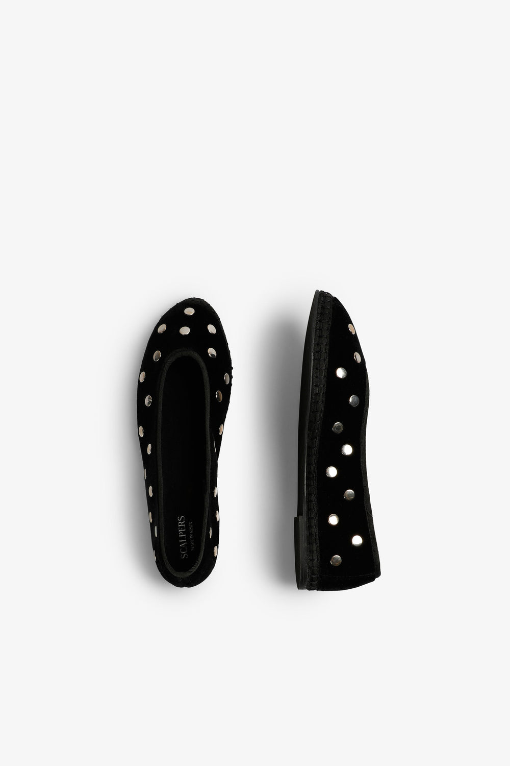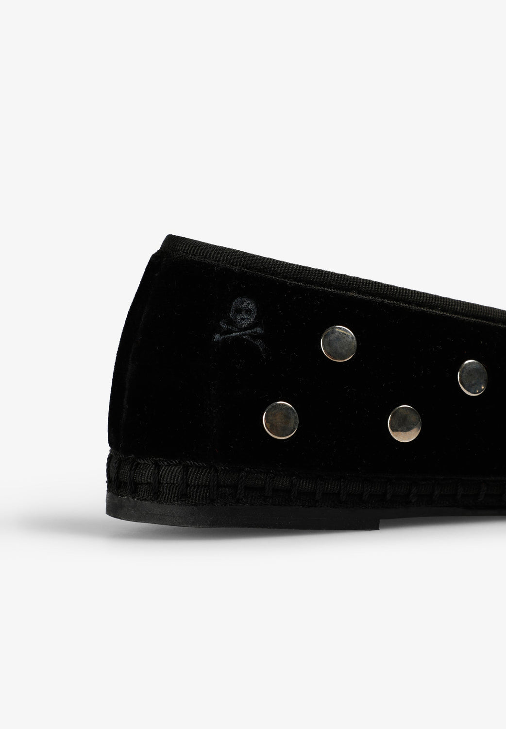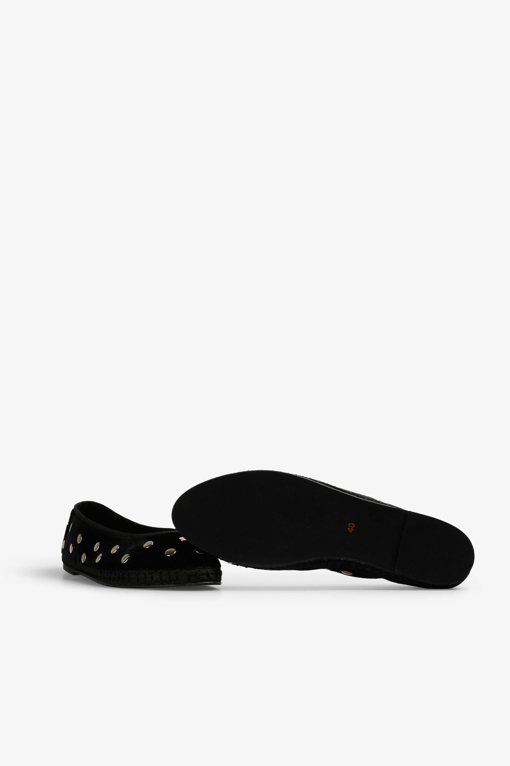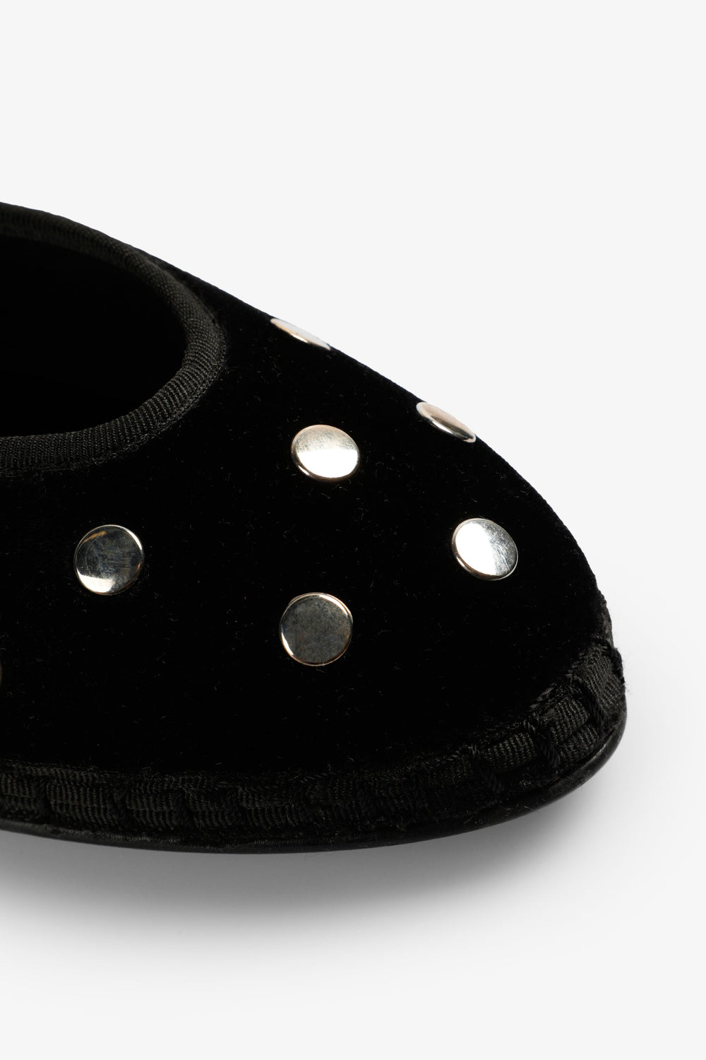 Ballet flats made of 100% BCI cotton. Velvety finish. Studs. Cotton lining. Matching embroidered logo detail.