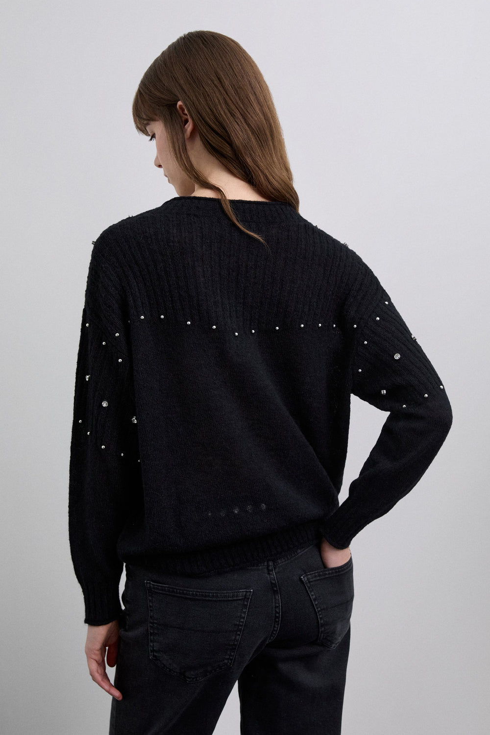 Sweater made of a knitted wool blend. Regular fit. V-neck. Long sleeves with ribbed cuffs. Studded detailing on the shoulders and sleeves