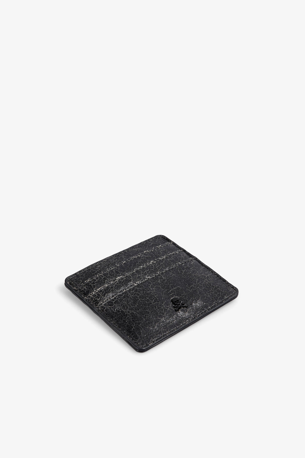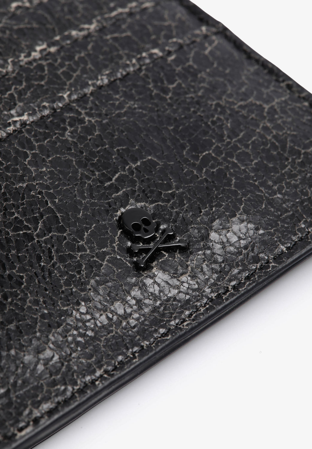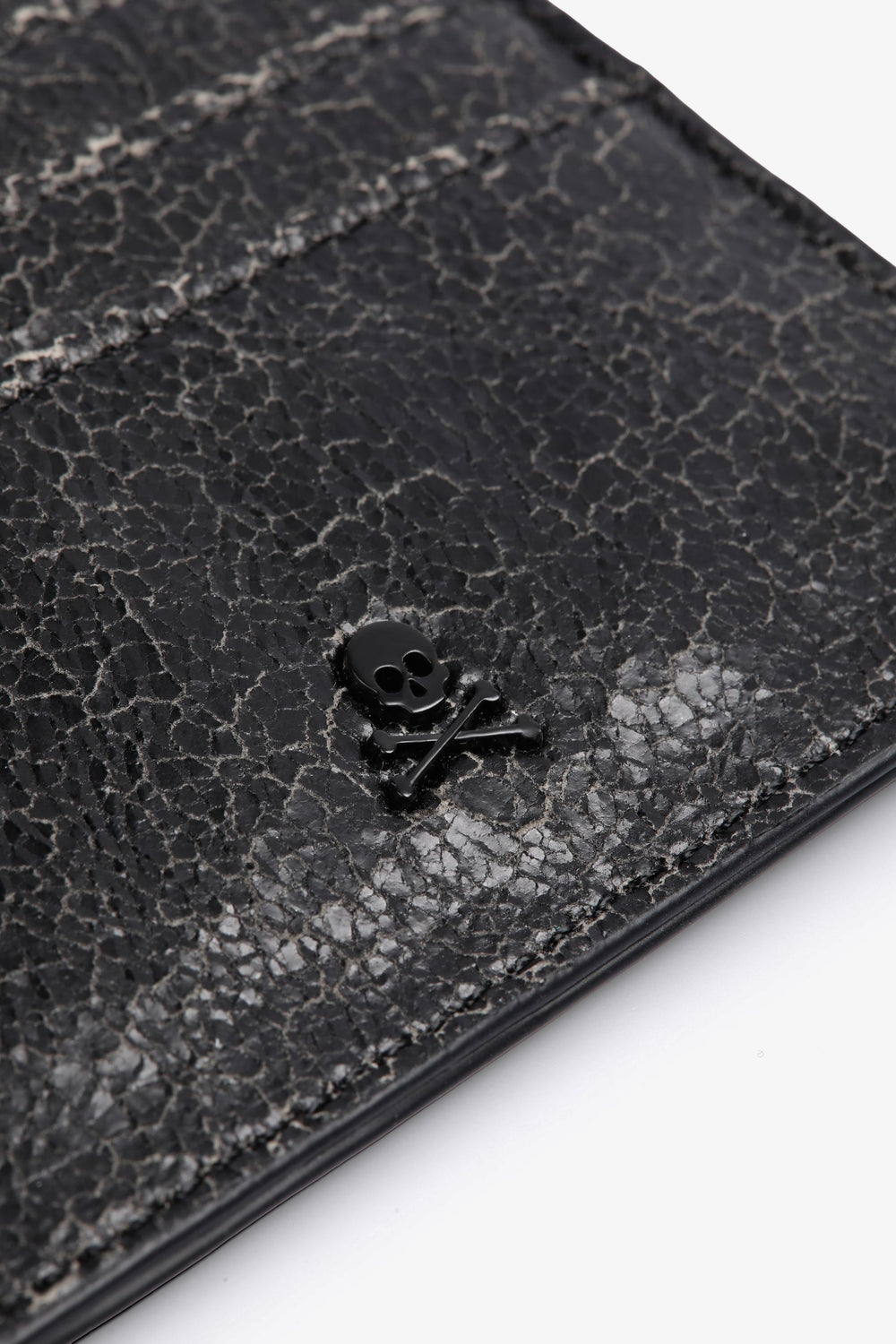 Textured animal print clutch. Metallic skull detail on front.