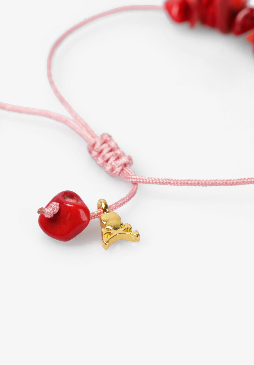 Combined bracelet with natural stone, metal details and textile thread. Handcrafted design with a mix of materials and a delicate finish.