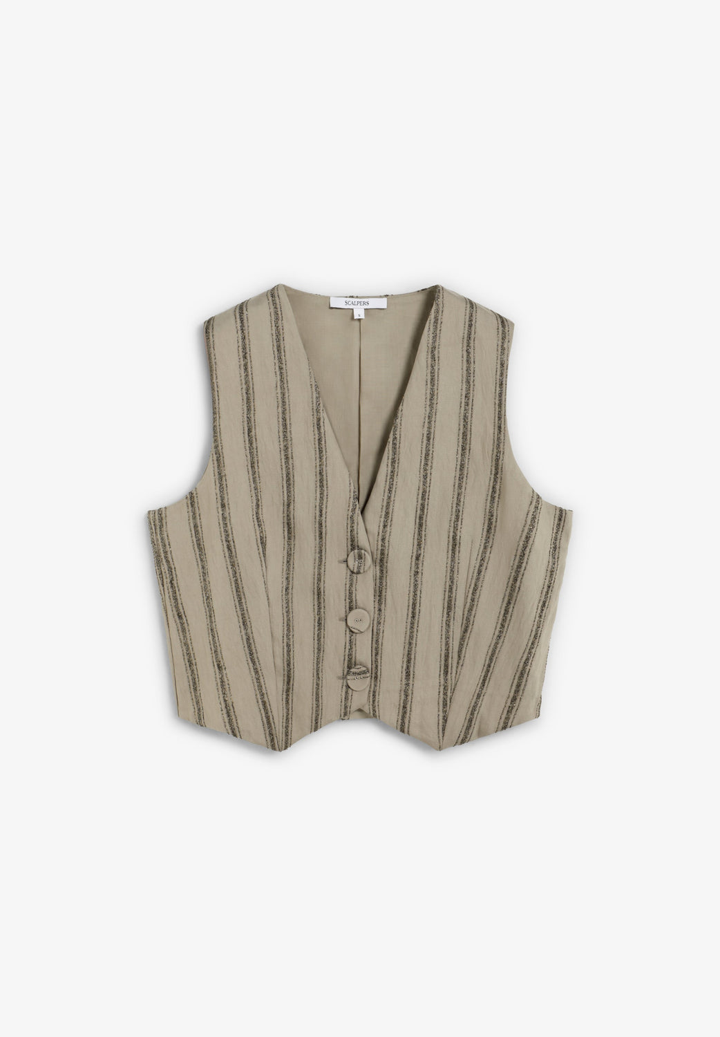 Striped waistcoat with metallic thread details. Made of flowing fabric. Regular fit. Button fastening. V-neck. Sleeveless design.