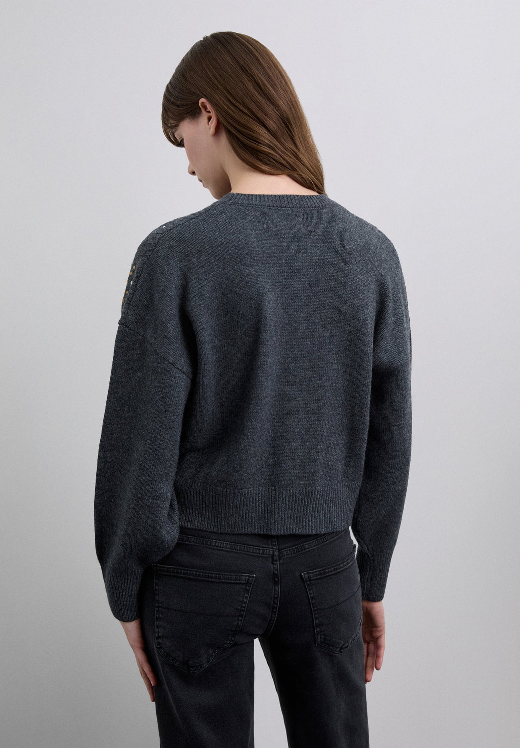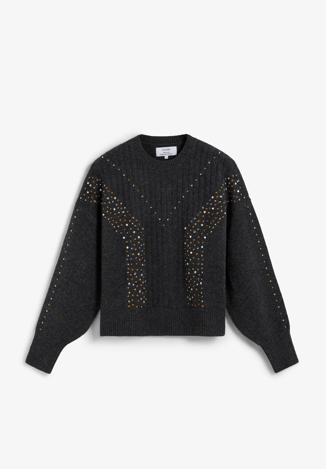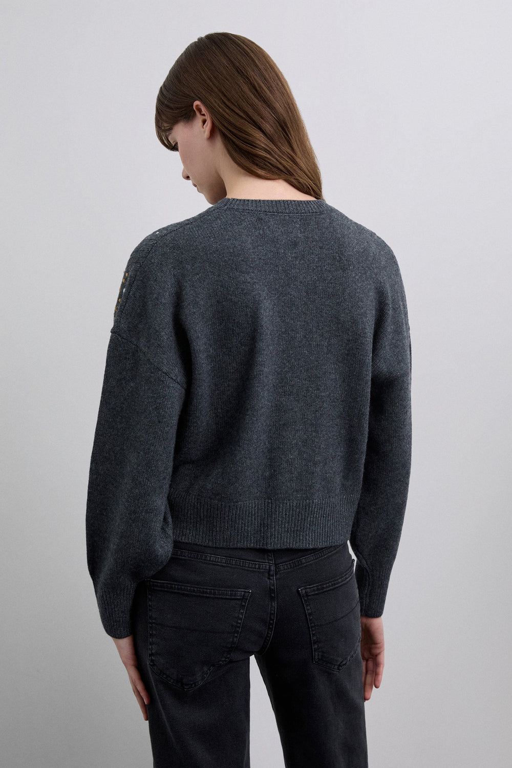 Ribbed knit sweater with stud detailing. Regular fit. Round neck. Long sleeves with ribbed cuffs.