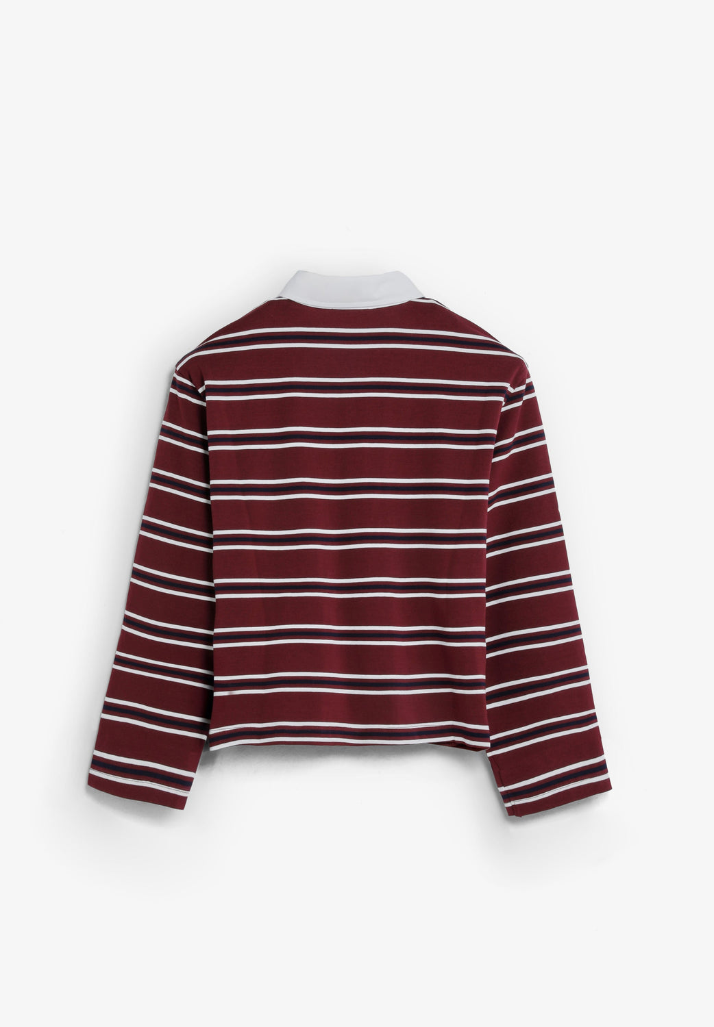 Polo shirt in 100% BCI cotton. Stripe print. Long sleeves. Contrasting collar. Button fastening. Embroidered contrast logo on the chest.