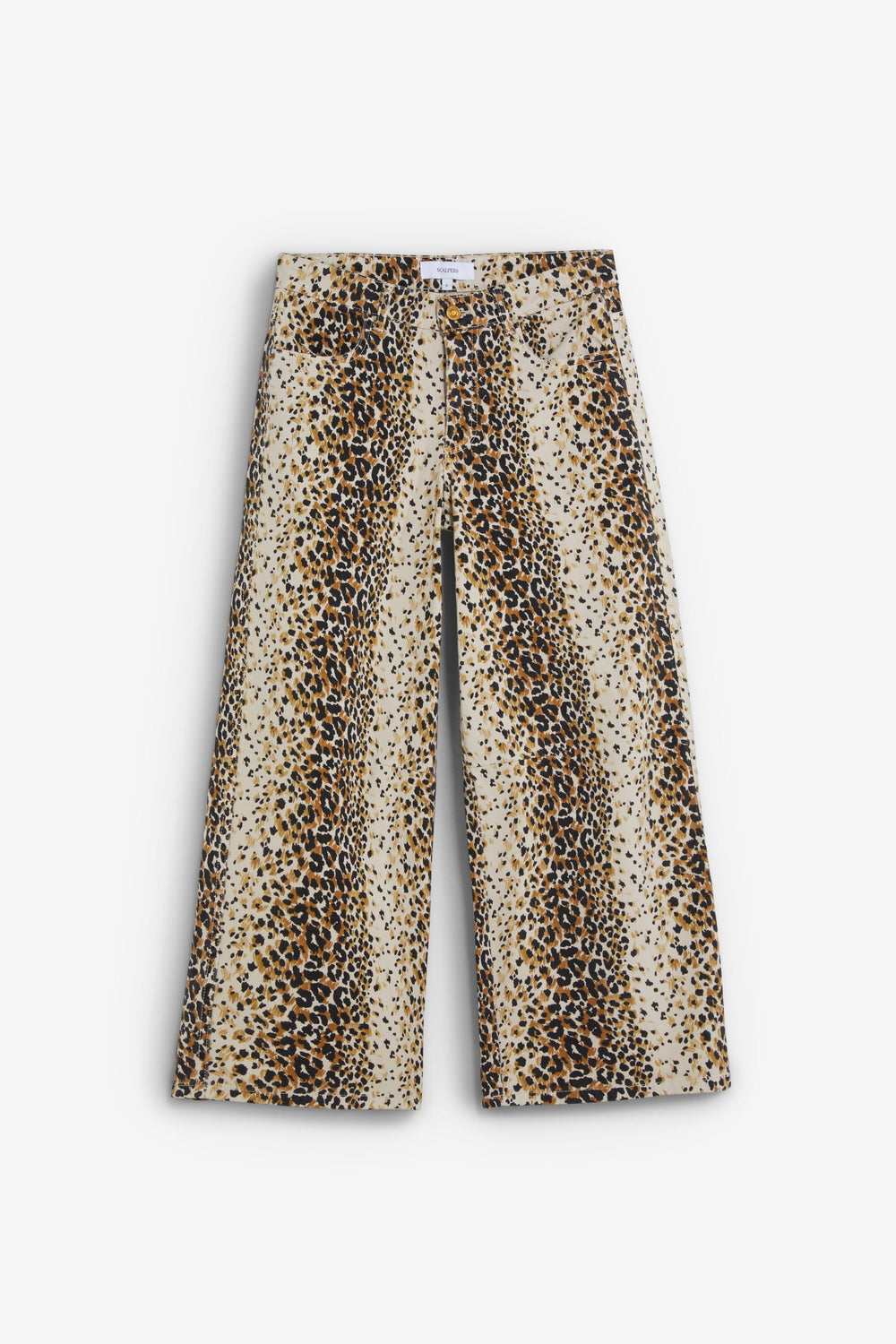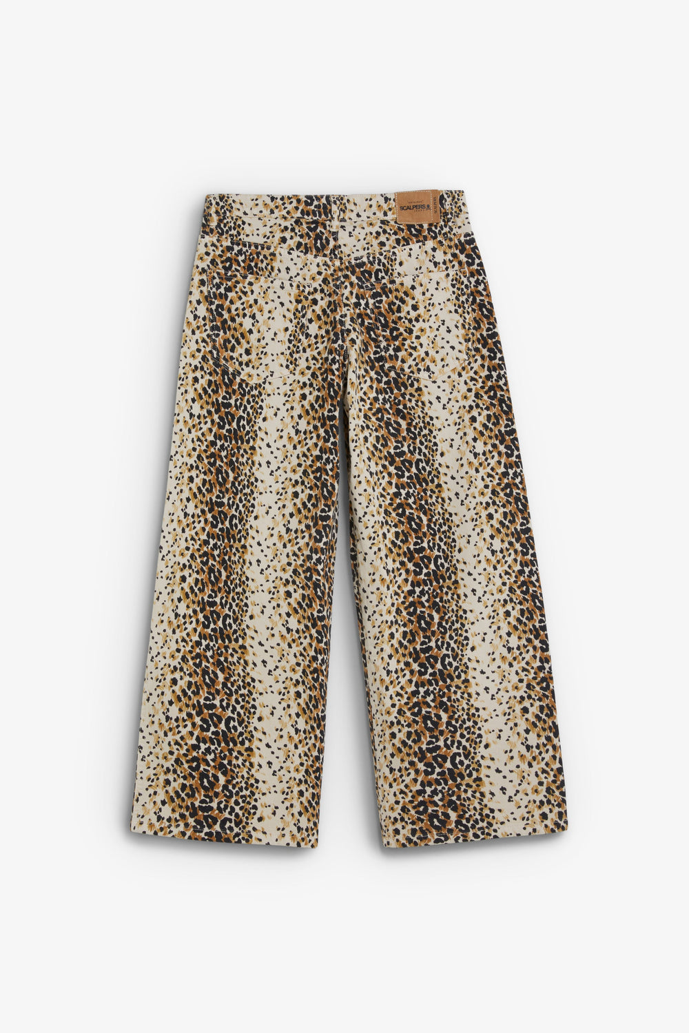 Trousers made of cotton with animal print. Culotte style. Golden button detail. Front and back pockets.