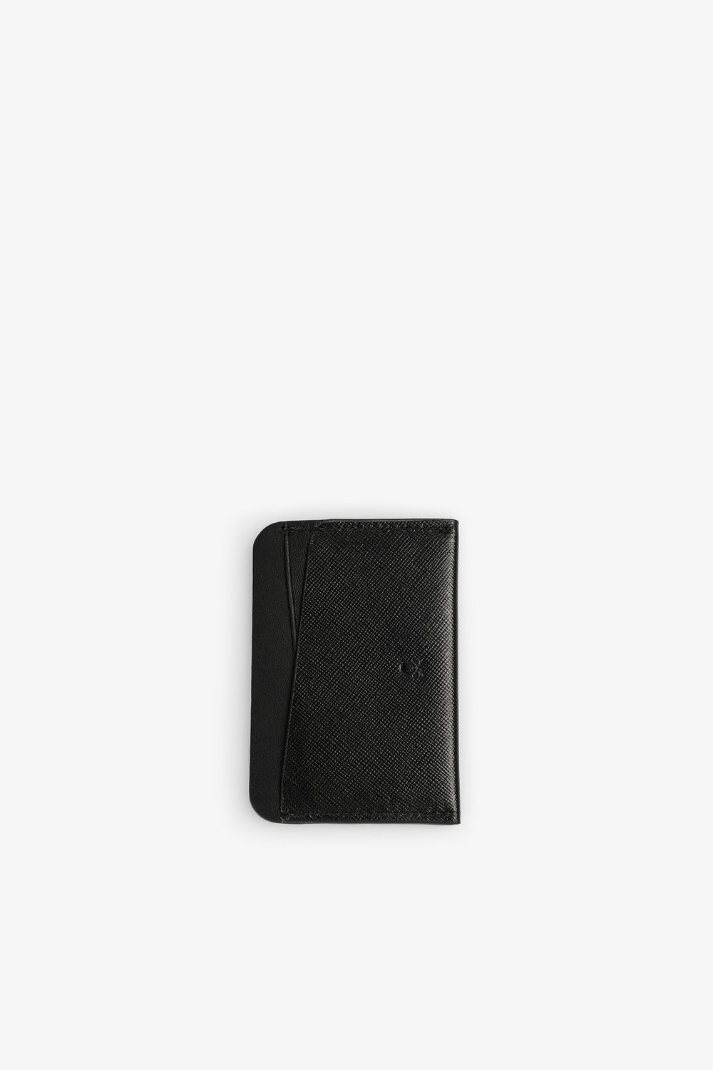100% leather card holder with engraved skull and logo. Includes slots on each side.