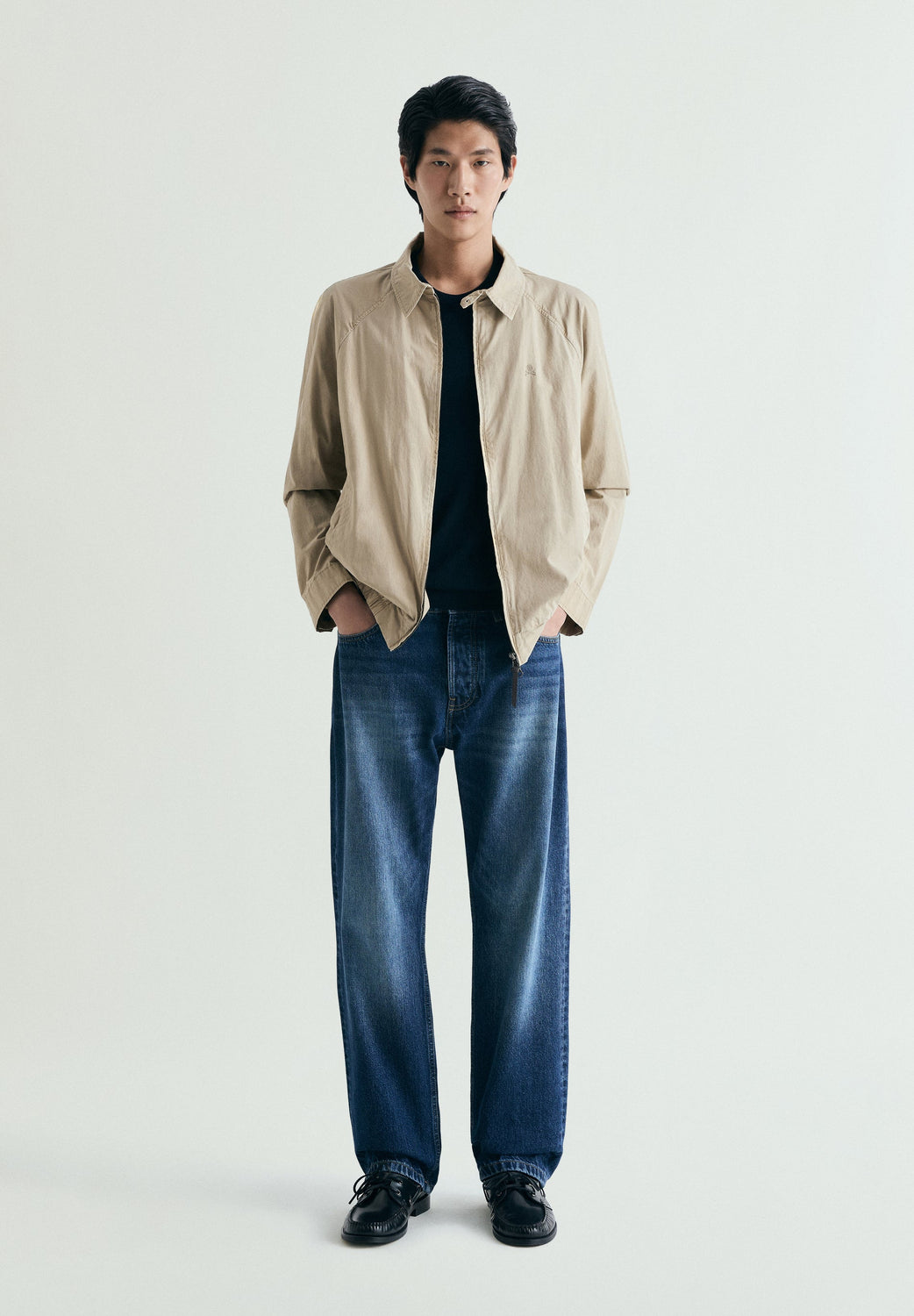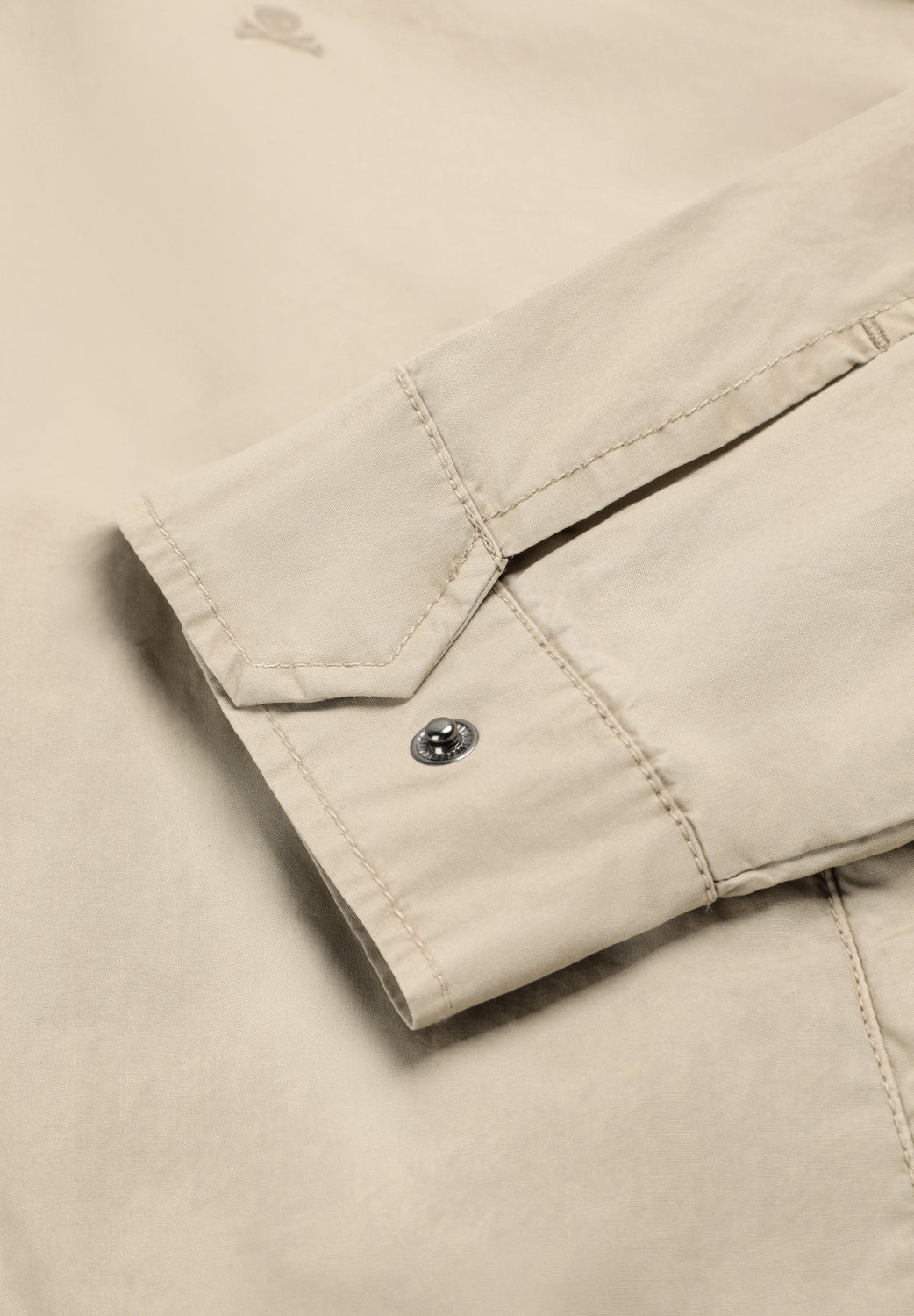 Bomber jacket made of 100% BCI cotton. Two side pockets with ribbed trim. Cross-strap collar with button fastening. Front double slider zip fastening. Matching embroidered skull on the chest.