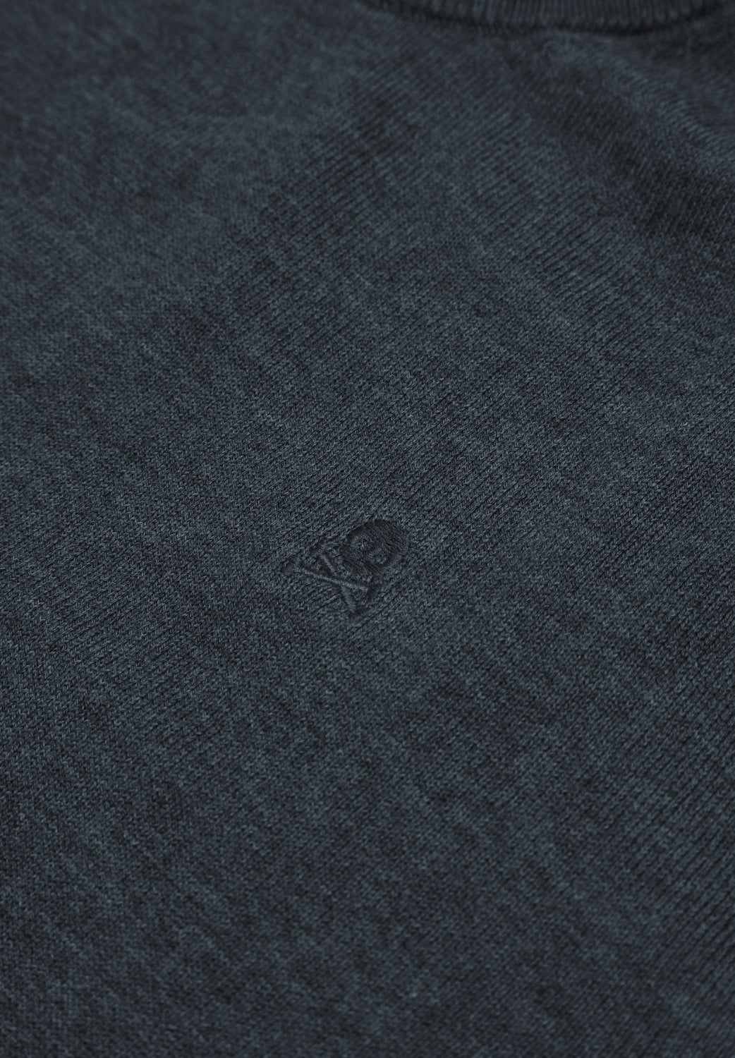 Sweater made of 100% high quality Supima cotton. Round neck. Matching embroidered skull on the chest. Ribbed trim.