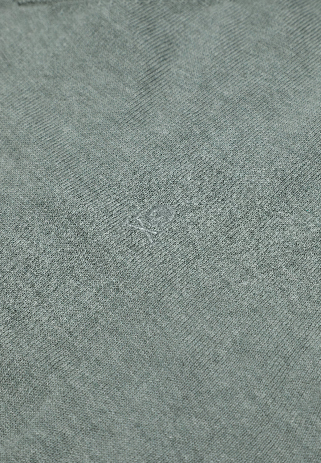 Sweater made of 100% high quality Supima cotton. V-neck. Matching embroidered skull on the chest. Ribbed trim.
