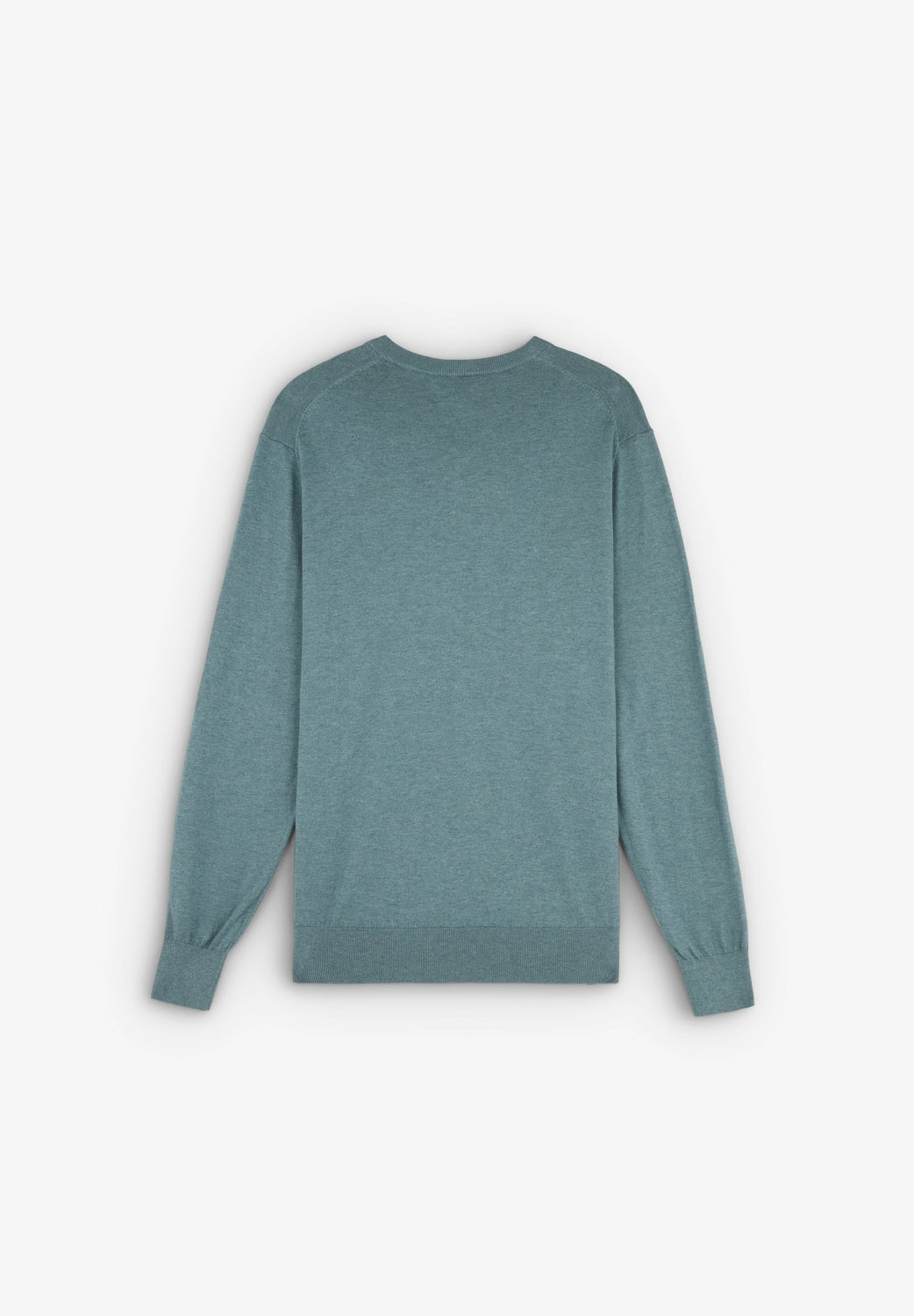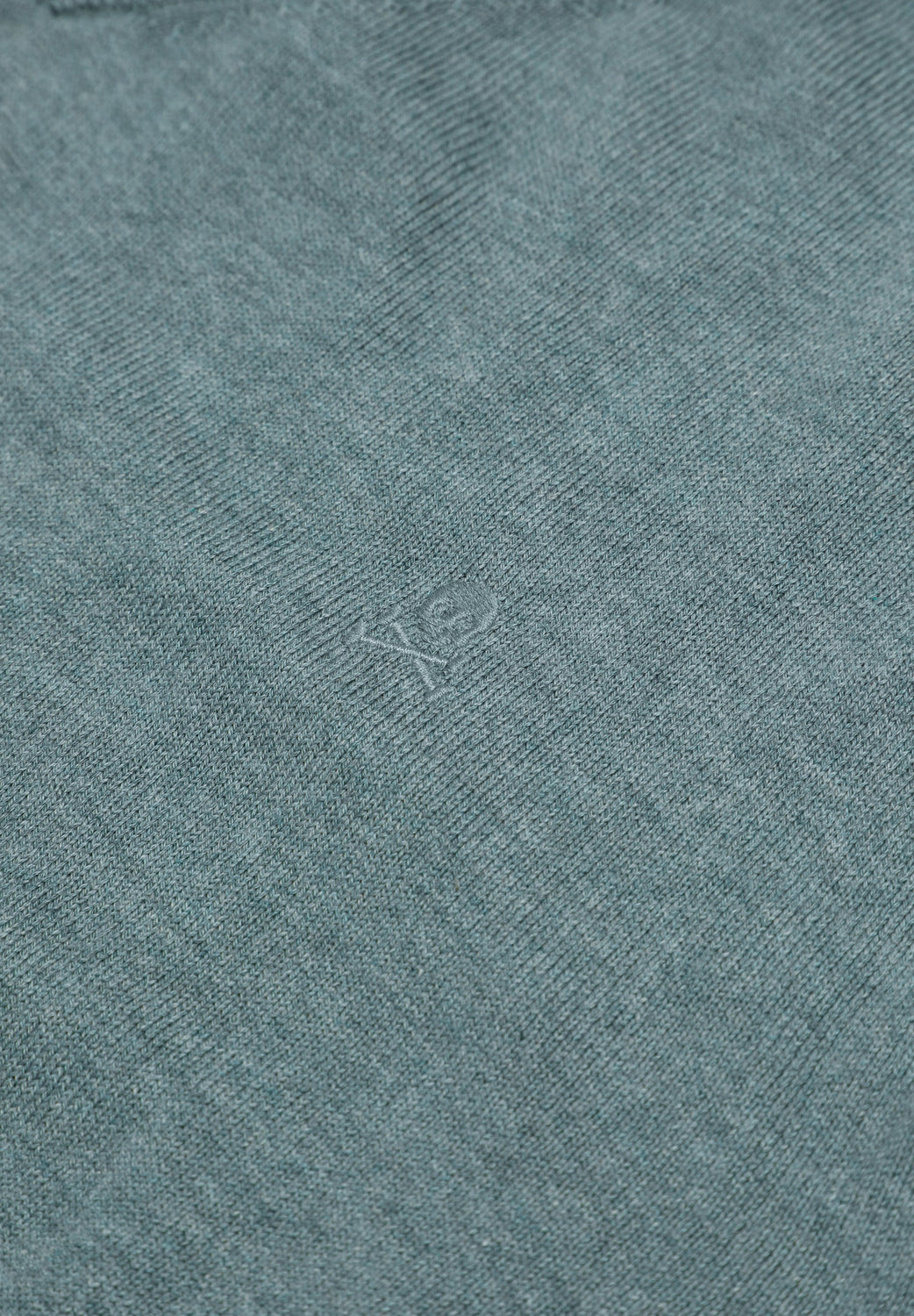 Sweater made of 100% high quality Supima cotton. V-neck. Matching embroidered skull on the chest. Ribbed trim.