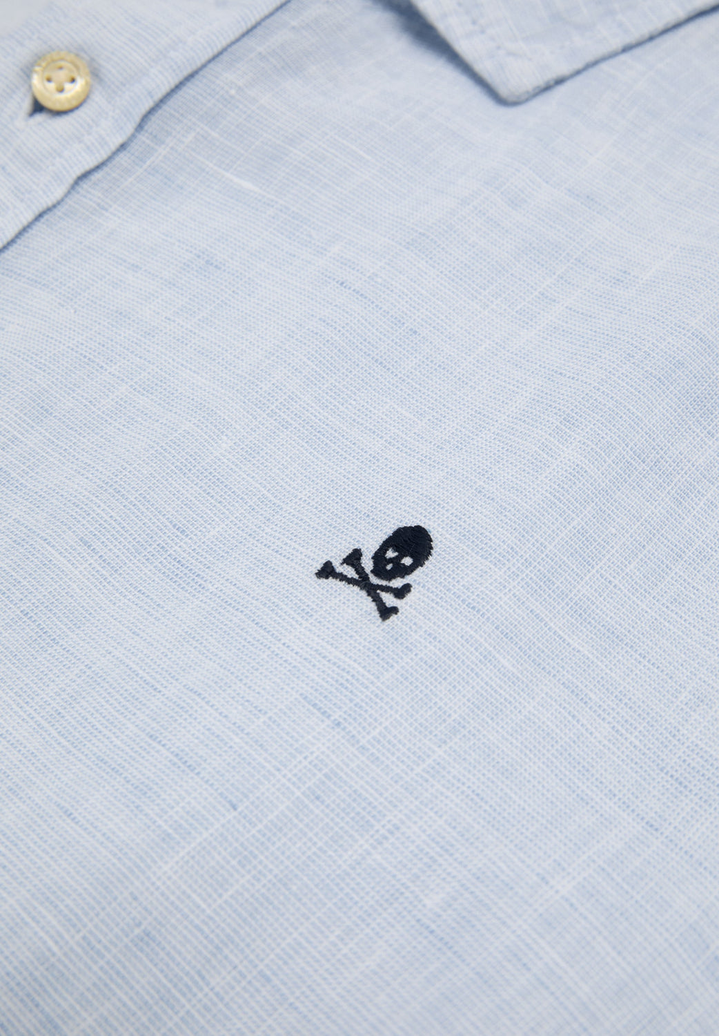 Shirt made of 100% linen. Long sleeves. Buttoned cuffs. Slim fit. Contrast embroidered skull on the chest. Front button fastening.