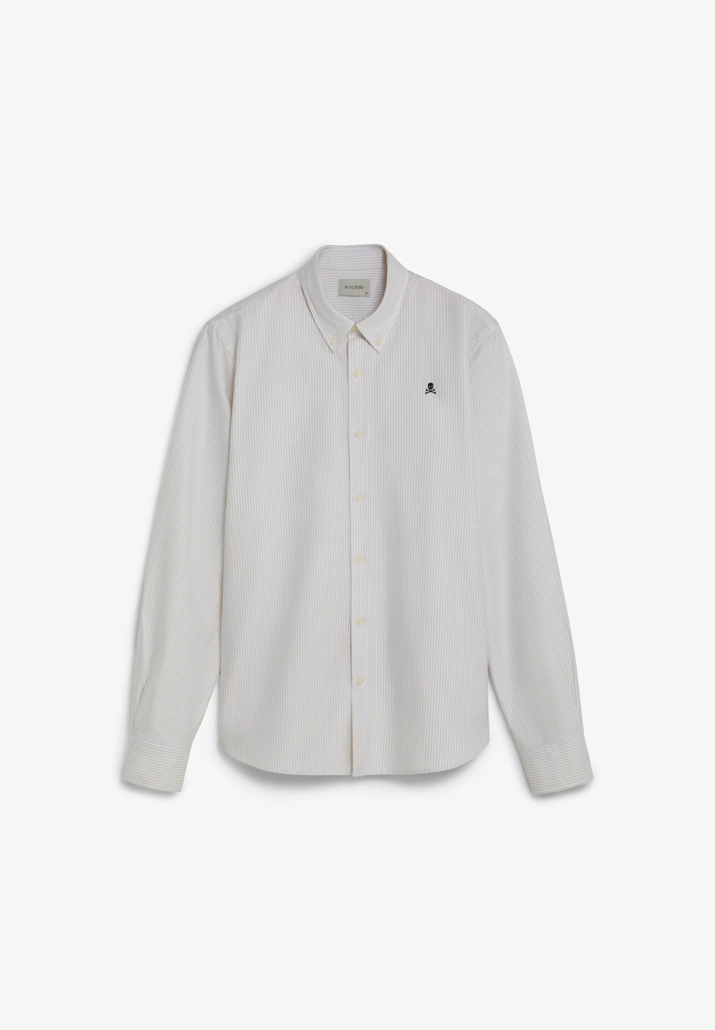 Oxford shirt made of 100% BCI cotton. Button fastening. Striped print. Long sleeves. Buttoned cuffs. Contrast embroidered skull detail on the chest.