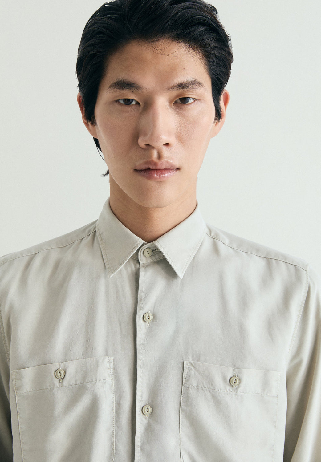 Shirt made of a linen and Tencel blend. Regular Fit. Classic collar and long sleeves with buttoned cuffs. Patch pockets on the chest. Front button fastening.