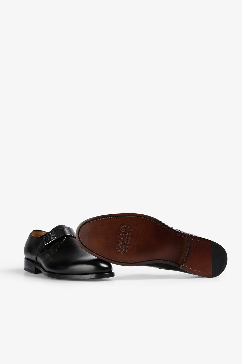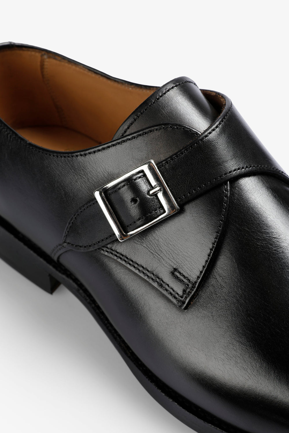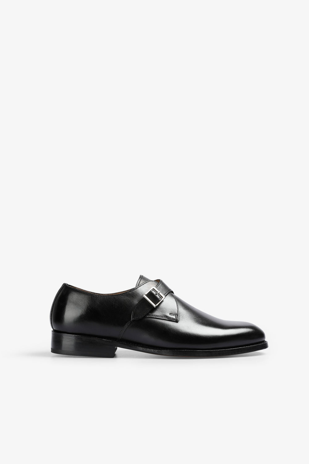 Monk shoes made in leather. Adjustable metal buckle. Leather sole. Logo detail on sole