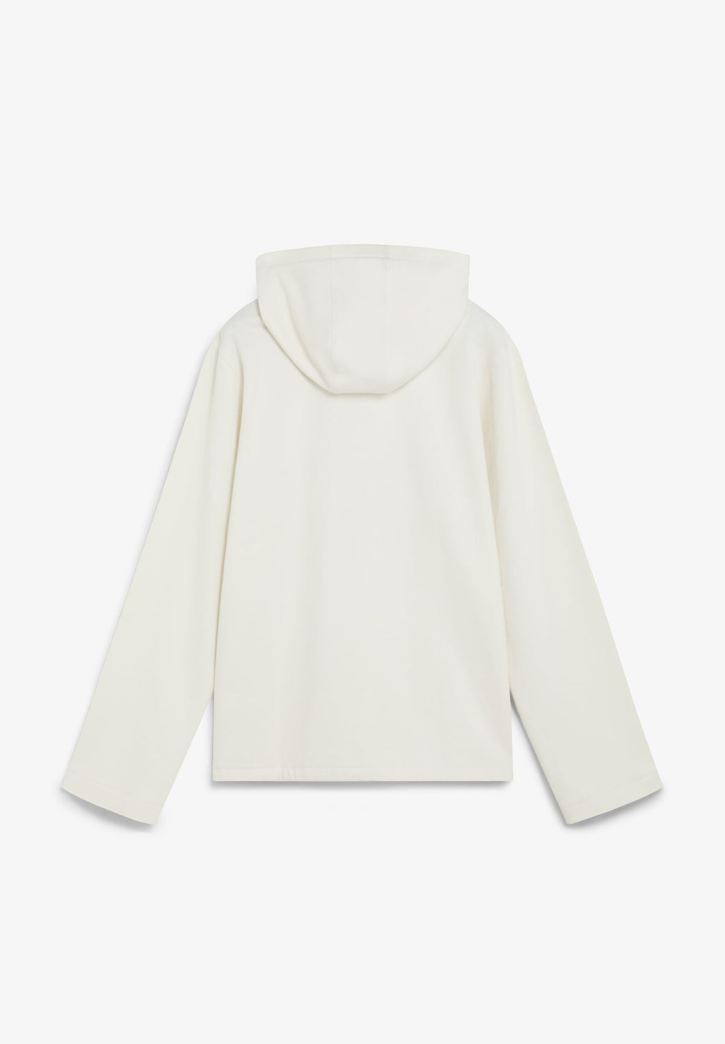 Sweatshirt with hood made of 100% cotton. Faded effect. Long sleeves. Front button fastening at the collar. Adjustable lower drawstring. Front pocket.