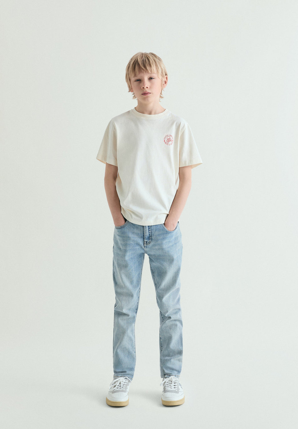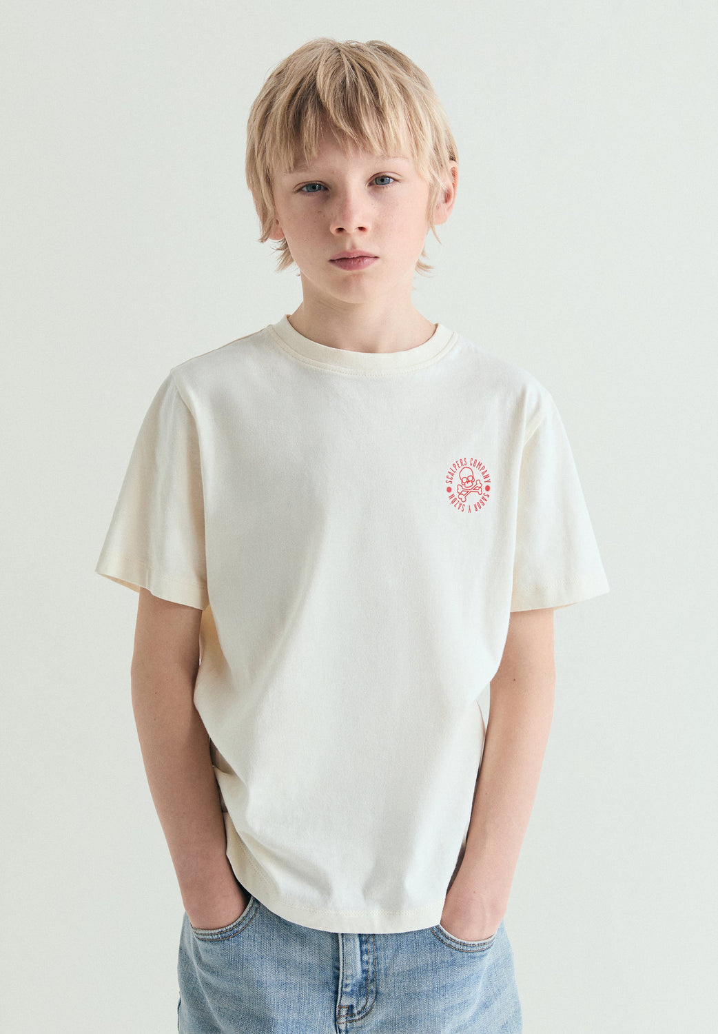 T-shirt made of 100% BCI cotton. Regular Fit. Round neck and short sleeves. Back print and embroidered detail on the chest.