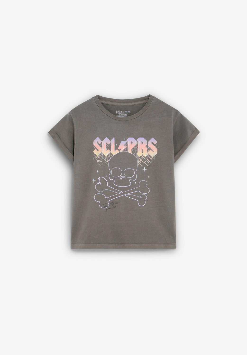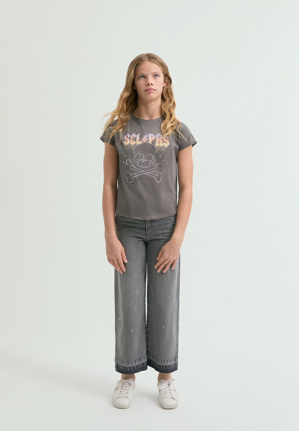 T-shirt made of 100% BCI cotton. Round neck. Short sleeve with turn-up. Front print with rhinestone detailing. Regular fit.