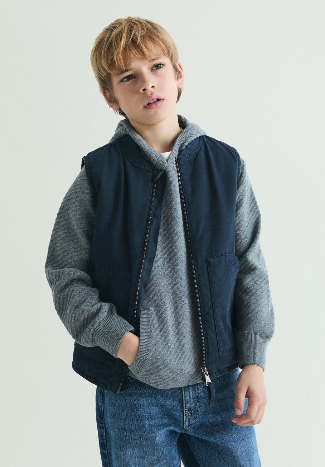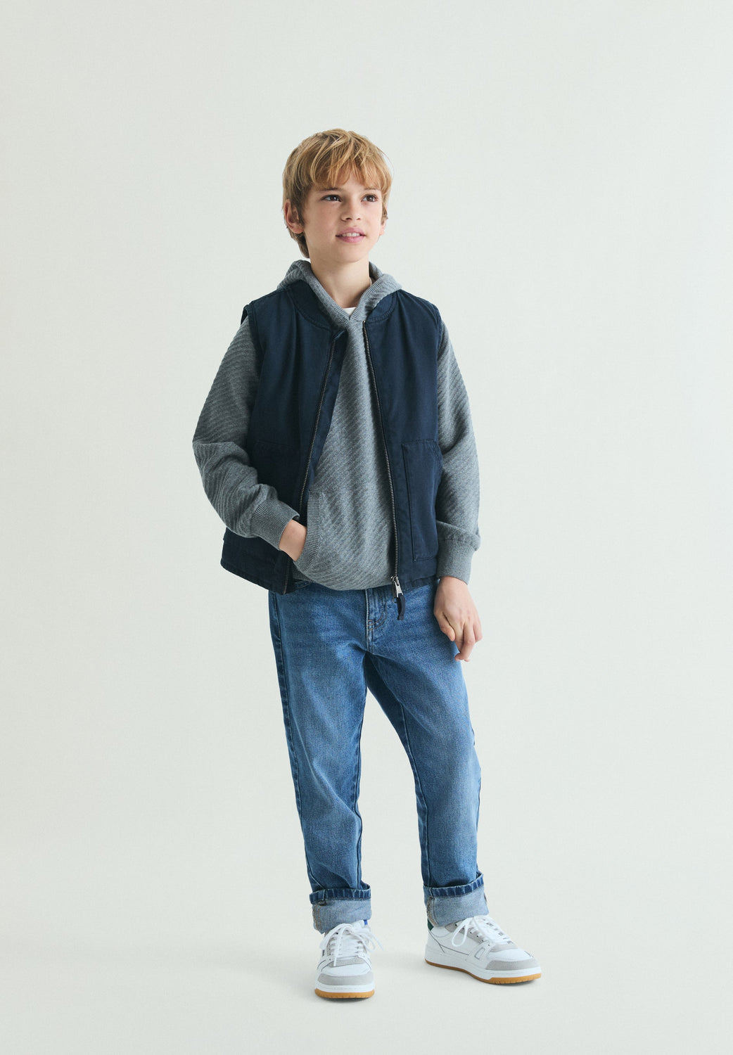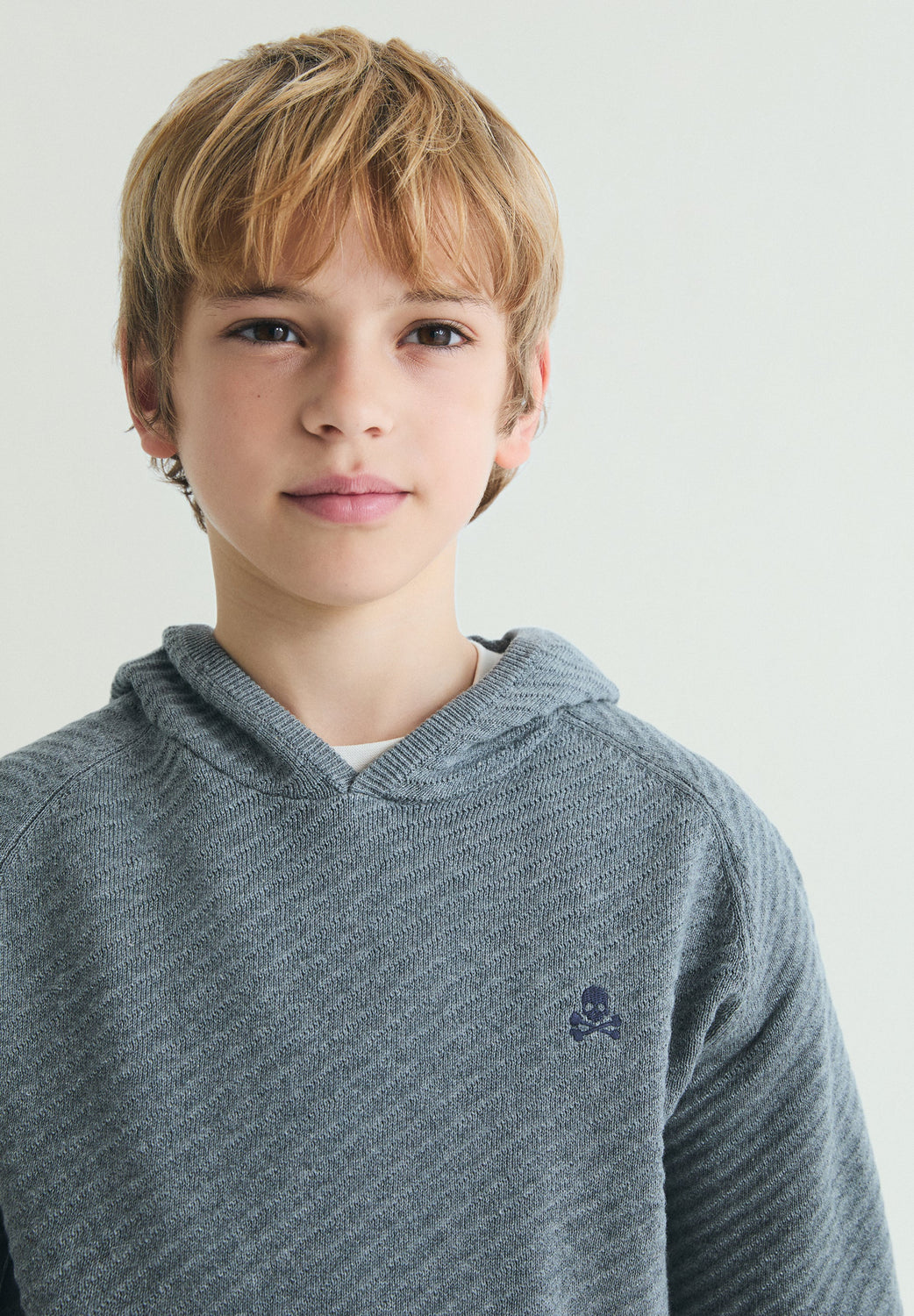 Basic sweatshirt made of 100% cotton. Regular fit, collar with hood and long raglan sleeves. Front pocket. Embroidered logo on the chest.