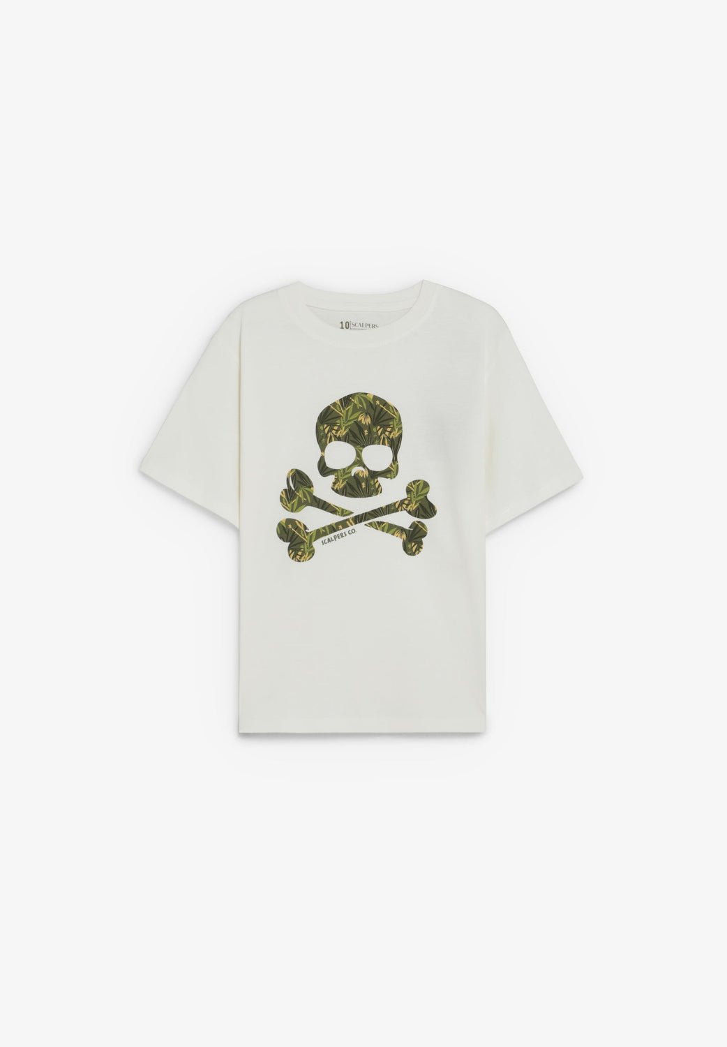 T-shirt made of 100% cotton. Skull print on the chest with tropical details. Round neck and regular fit.