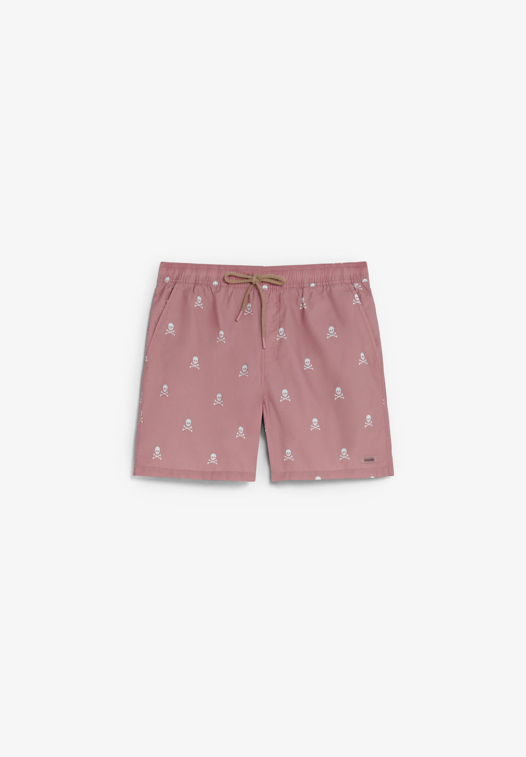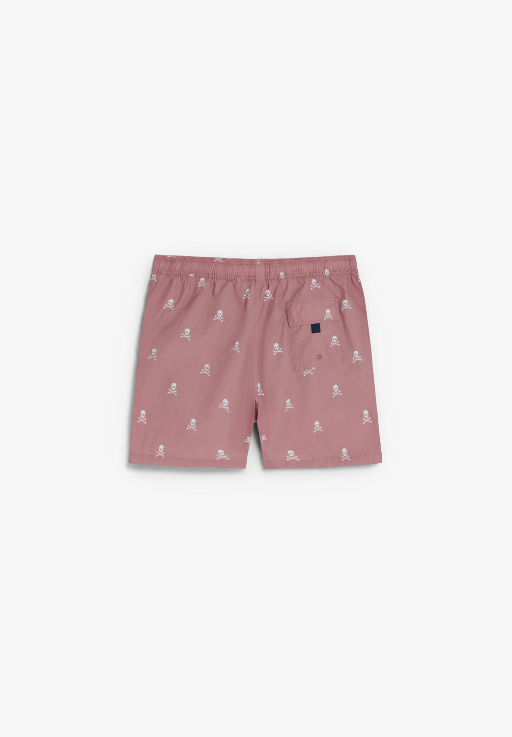 Swimming trunks with elasticated waistband and drawstring. Side pockets. Contrast skull print. Back pocket.