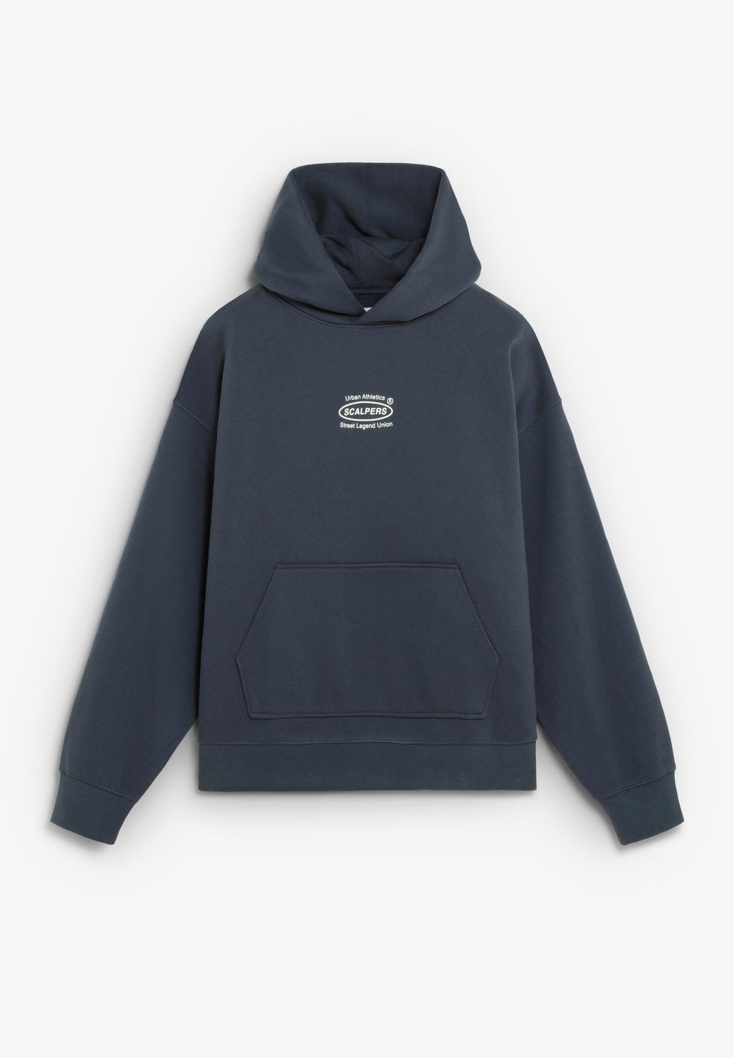 Sweatshirt with hood made of 100% BCI cotton. Oversized fit. Front and back print. Faded effect. Pouch pocket on the front. Ribbed trim.