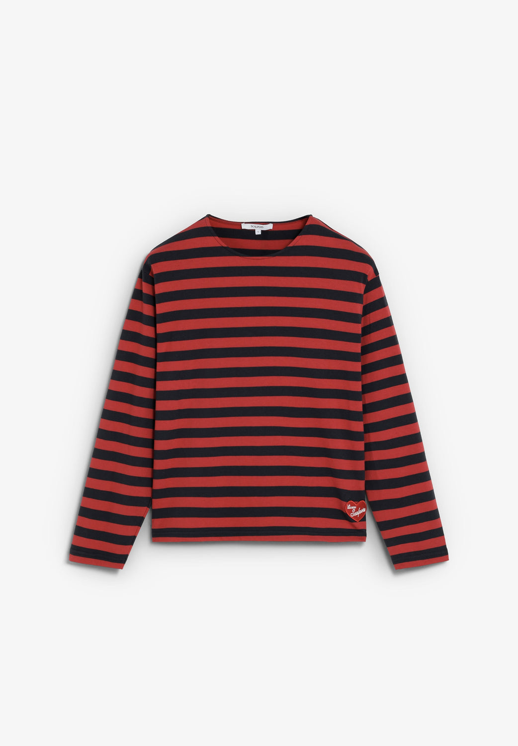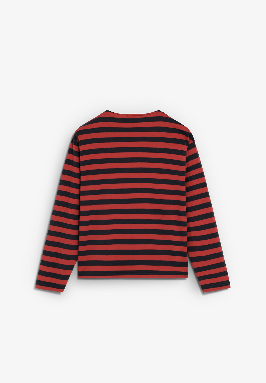 Striped T-shirt made of 100% BCI cotton. Regular fit, round neck and long sleeves. Logo patch detail on the front hem.