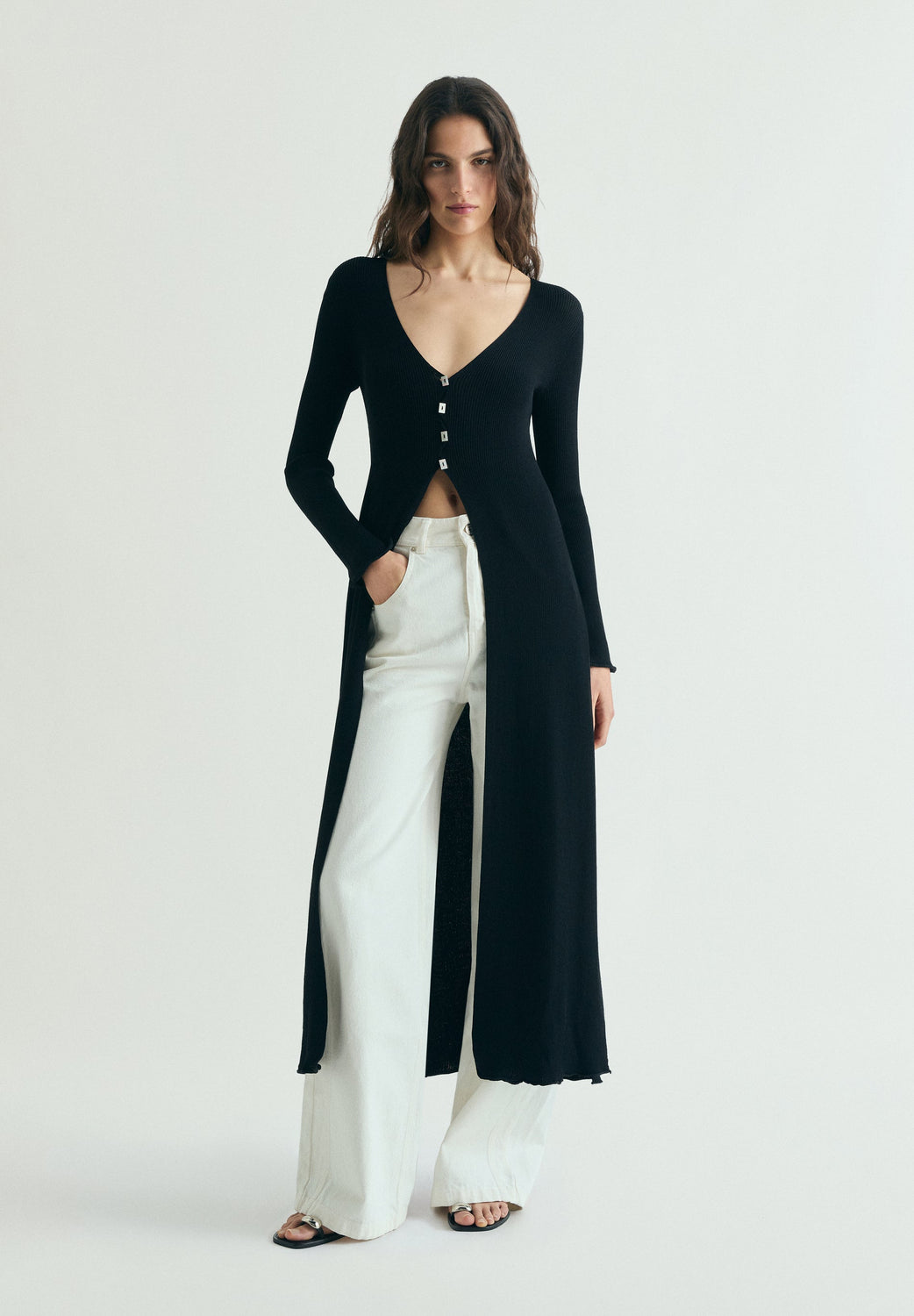 Scbuttons long knit cardigan