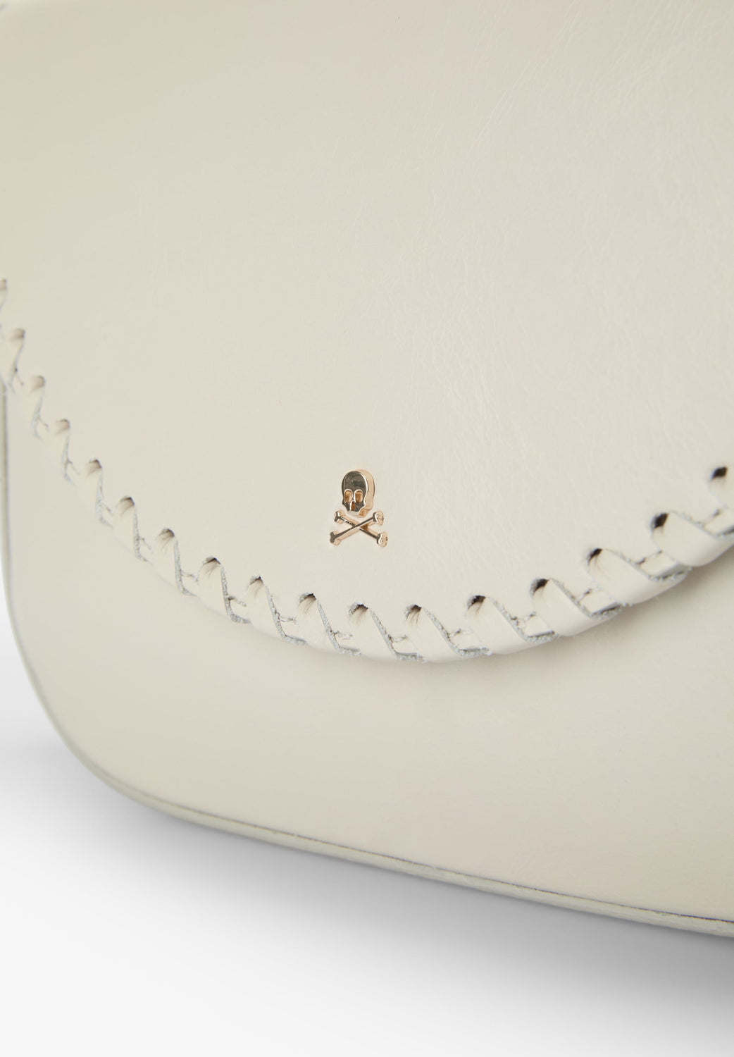 Bag made of 100% leather. Split suede lining. Inner zipped compartment. Braided flap with magnetic button closure. Metal skull on the front. Adjustable strap.