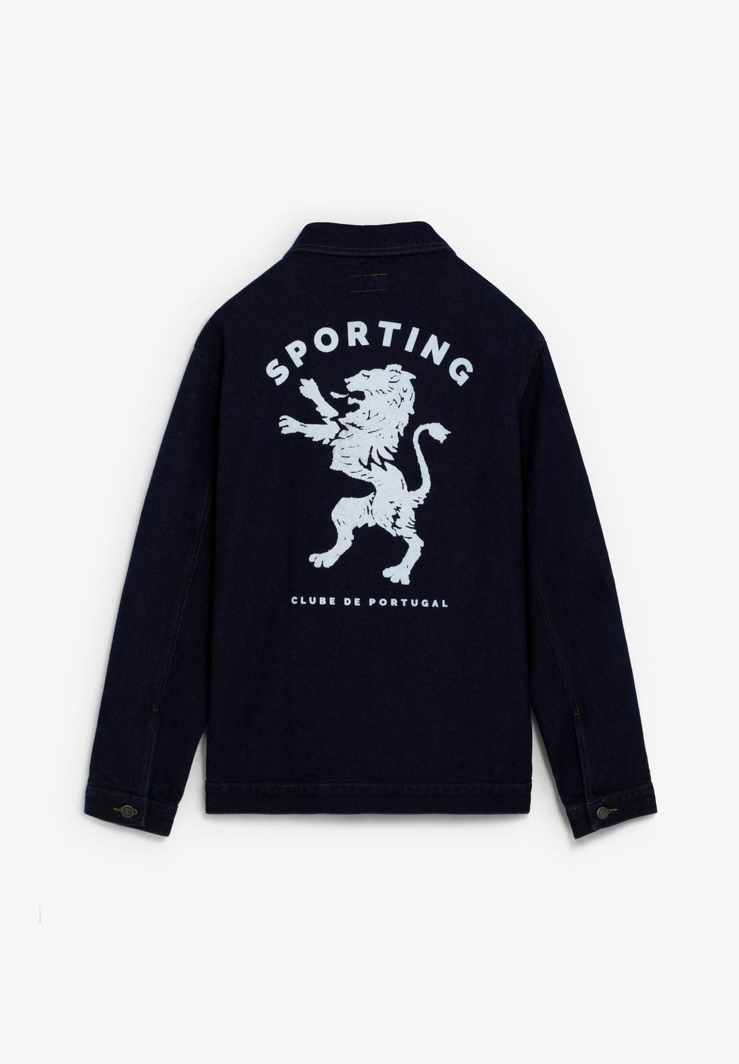 Denim jacket made of 100% cotton. Lapel collar and long sleeves with buttoned cuffs. Buttoned chest pocket with embroidered logo detail. High-density printing on the back. Button fastening. Made in Spain.