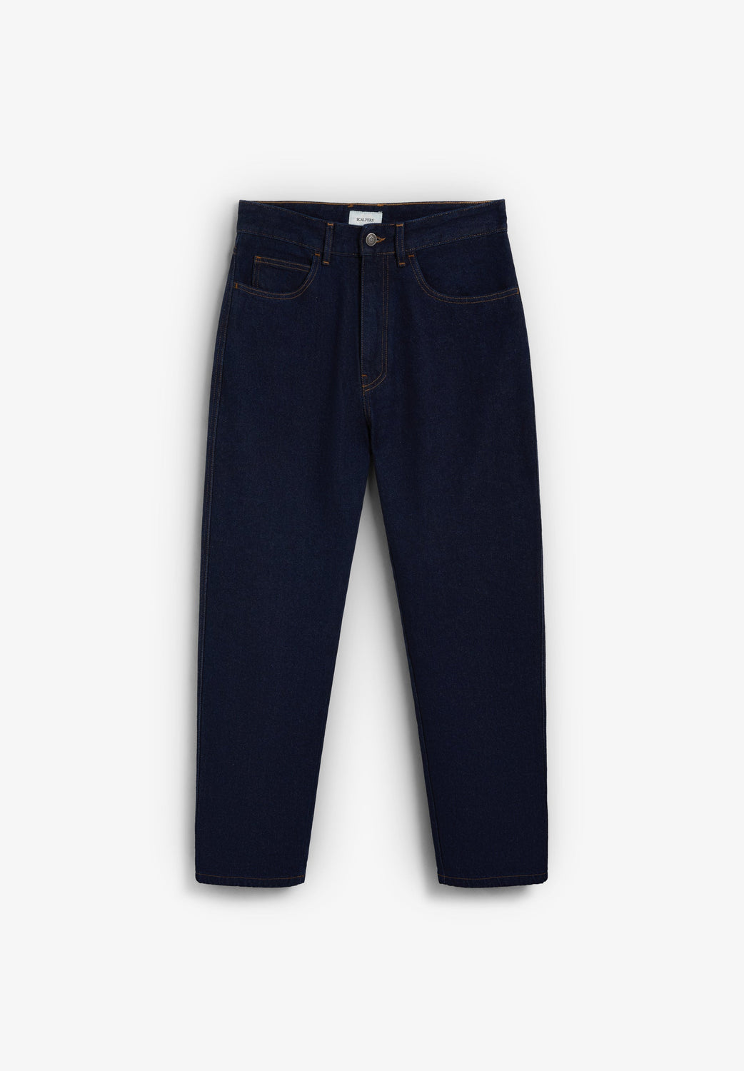 Cropped fit jeans. Five pockets. Embroidered pocket. Belt loops at the waist. Front zip and button fastening. Made in Spain.