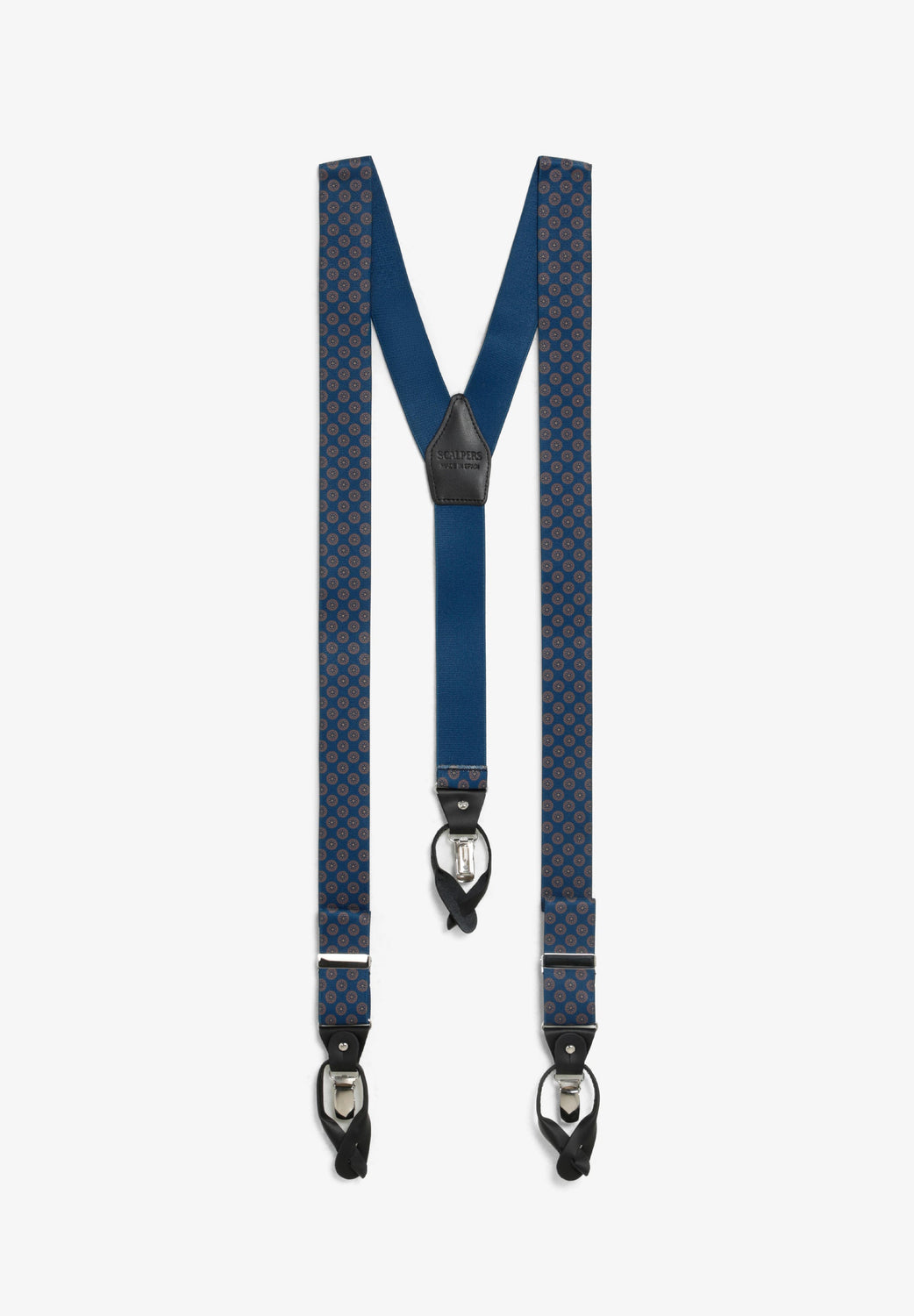 Elasticated braces with contrast design. Metal details and leather runners.