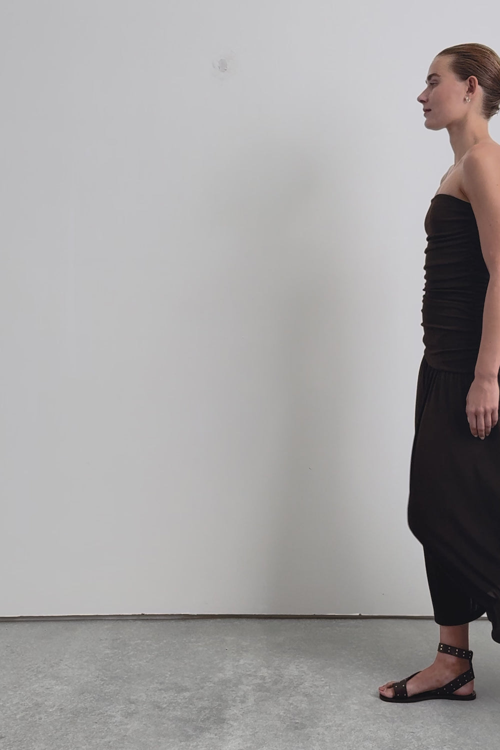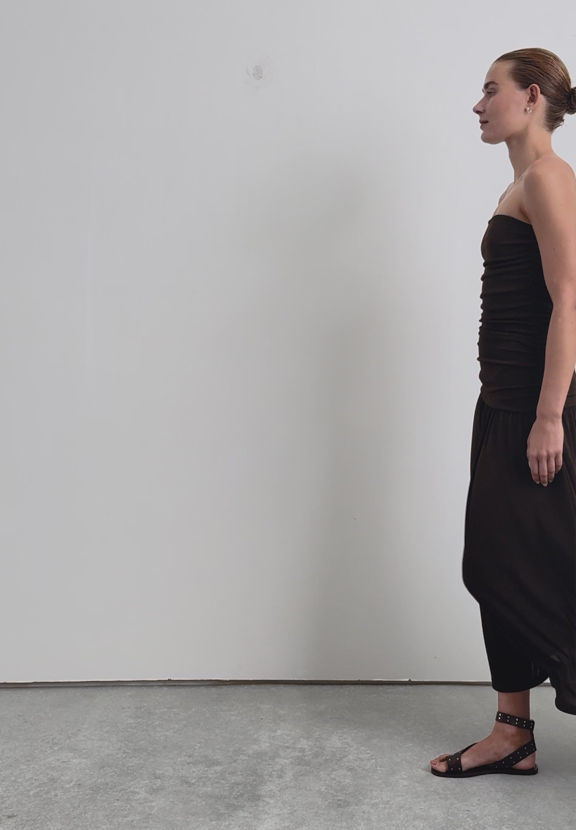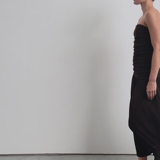 Dress made of slightly stretchy fine knit. Slim fit, strapless, gathered detail on body. Midi cut.