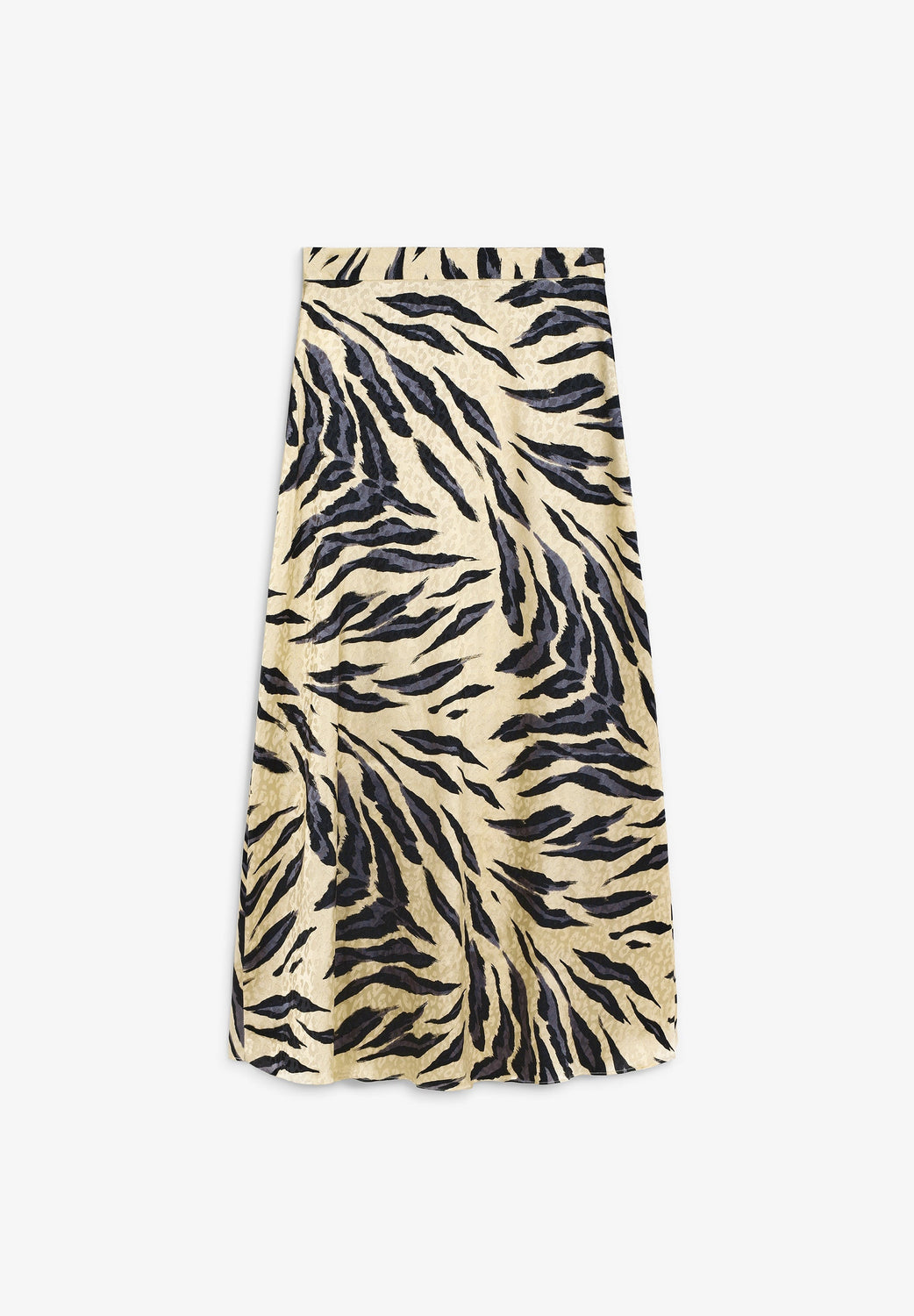 Falda midi. Estampado animal print. Cintura elástica. Ondas en el bajo.